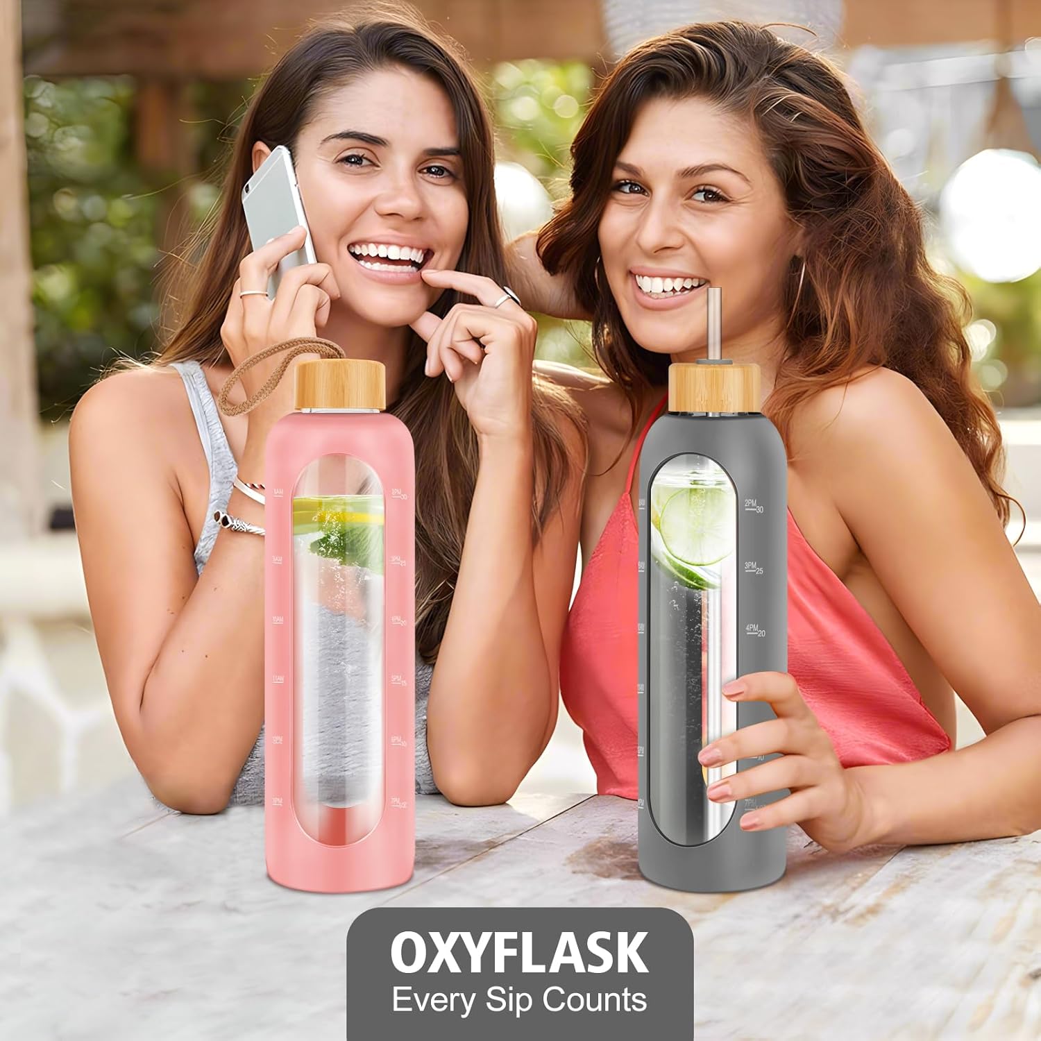 - TRACK DAILY HYDRATION GOALS: Stay on top of your water intake with this glass water bottle with time marker, featuring clear volume indicators. Whether you're at work or exercising, it’s a simple, effective tool to meet your health and hydration goals.