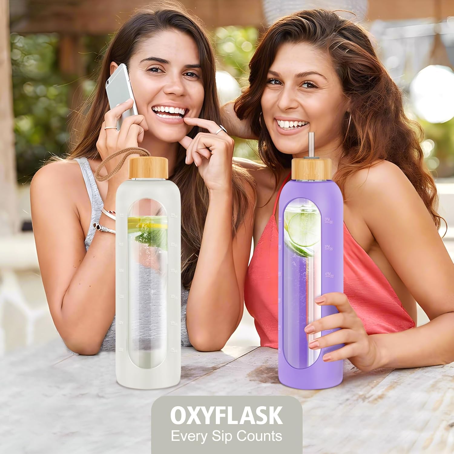 - TRACK DAILY HYDRATION GOALS: Stay on top of your water intake with this glass water bottle with time marker, featuring clear volume indicators. Whether you're at work or exercising, it’s a simple, effective tool to meet your health and hydration goals.