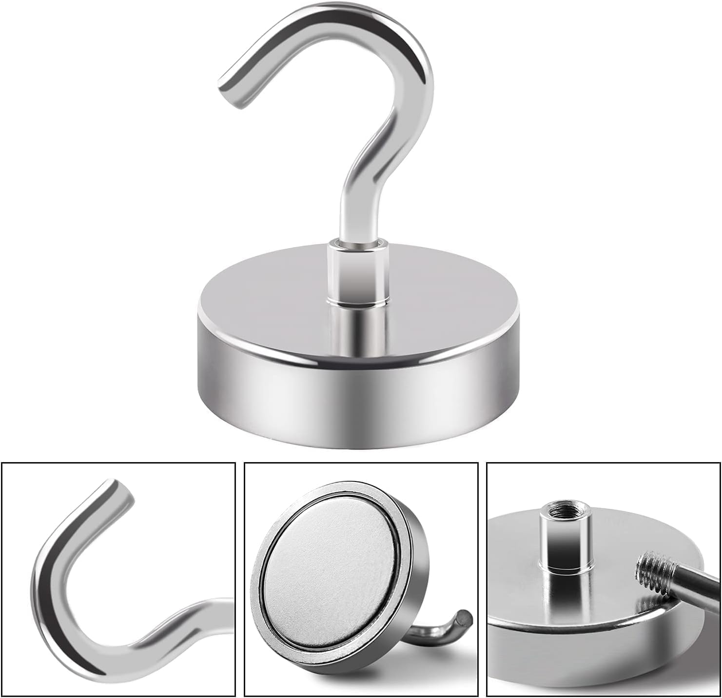 - POWERFUL & DURABLE:We provide 3 layers of coating on the metal base, metal hook and magnet: Ni-Cu-Ni, so our magnet hooks have excellent anti-corrosion and scratch resistance. The magnetic hooks use high-quality neodymium magnets, which provide a strong magnetic force and can hang items weighing up to 150 pounds