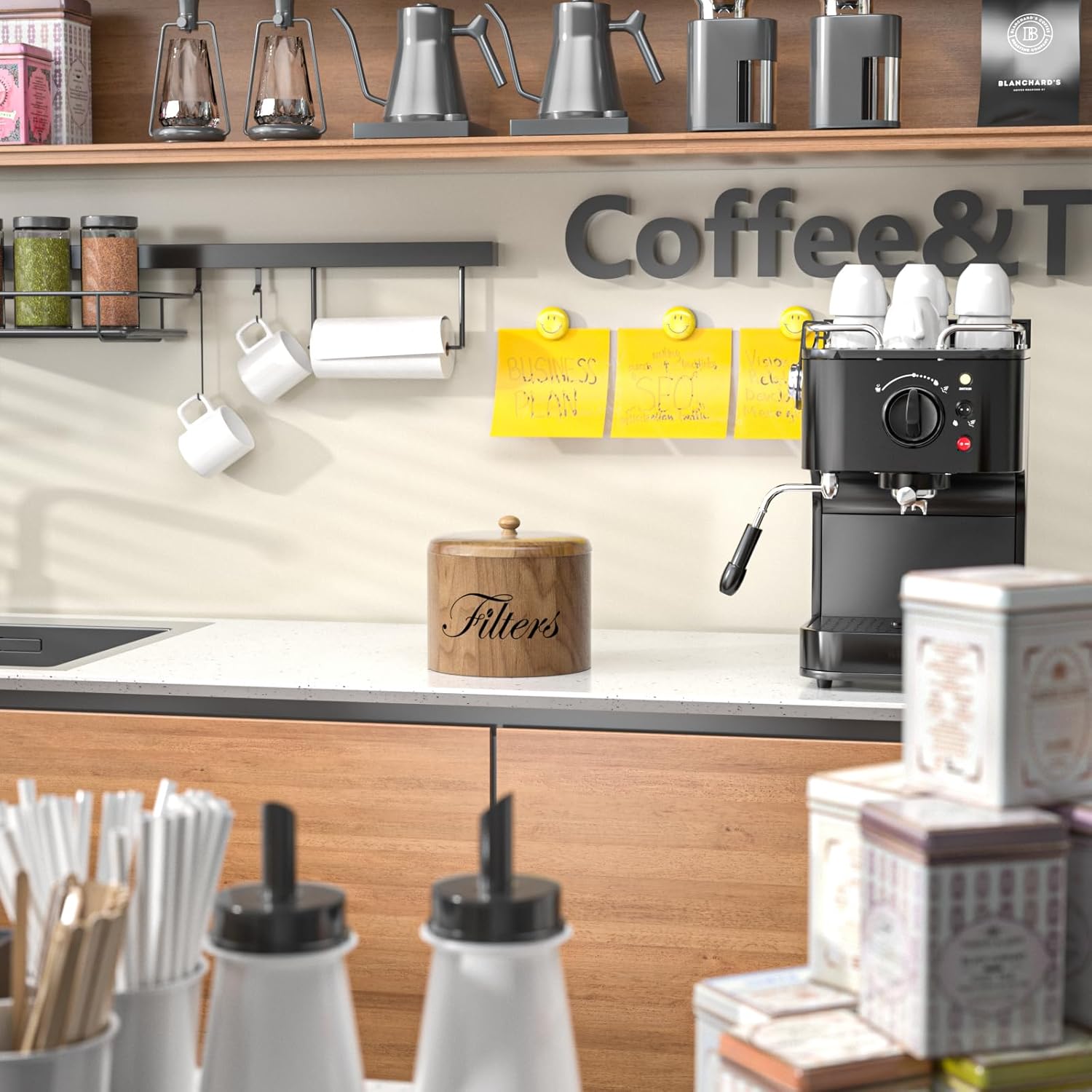 - 【Sturdy Coffee Bar Decor】: Our coffee filter holder storage is made from wood, Smooth surface are straightforward to clean, wipe with a damp cloth. It is a nice decoration in your Kitchen Counter, coffee bar decor