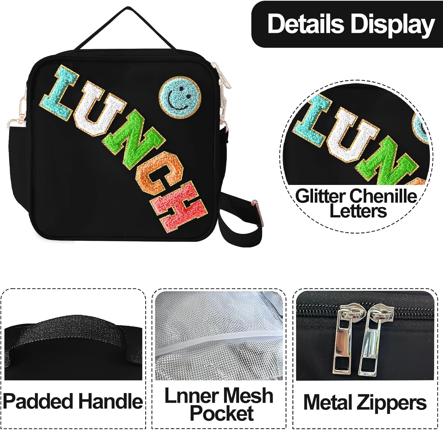 - UNIQUE DESIGN: Cute smiley face design, give you a good mood every day. The reusable lunch box has a handle and features a detachable and adjustable shoulder strap. There are three ways to carry it as a shoulder bag, crossbody bag or stylish handbag.