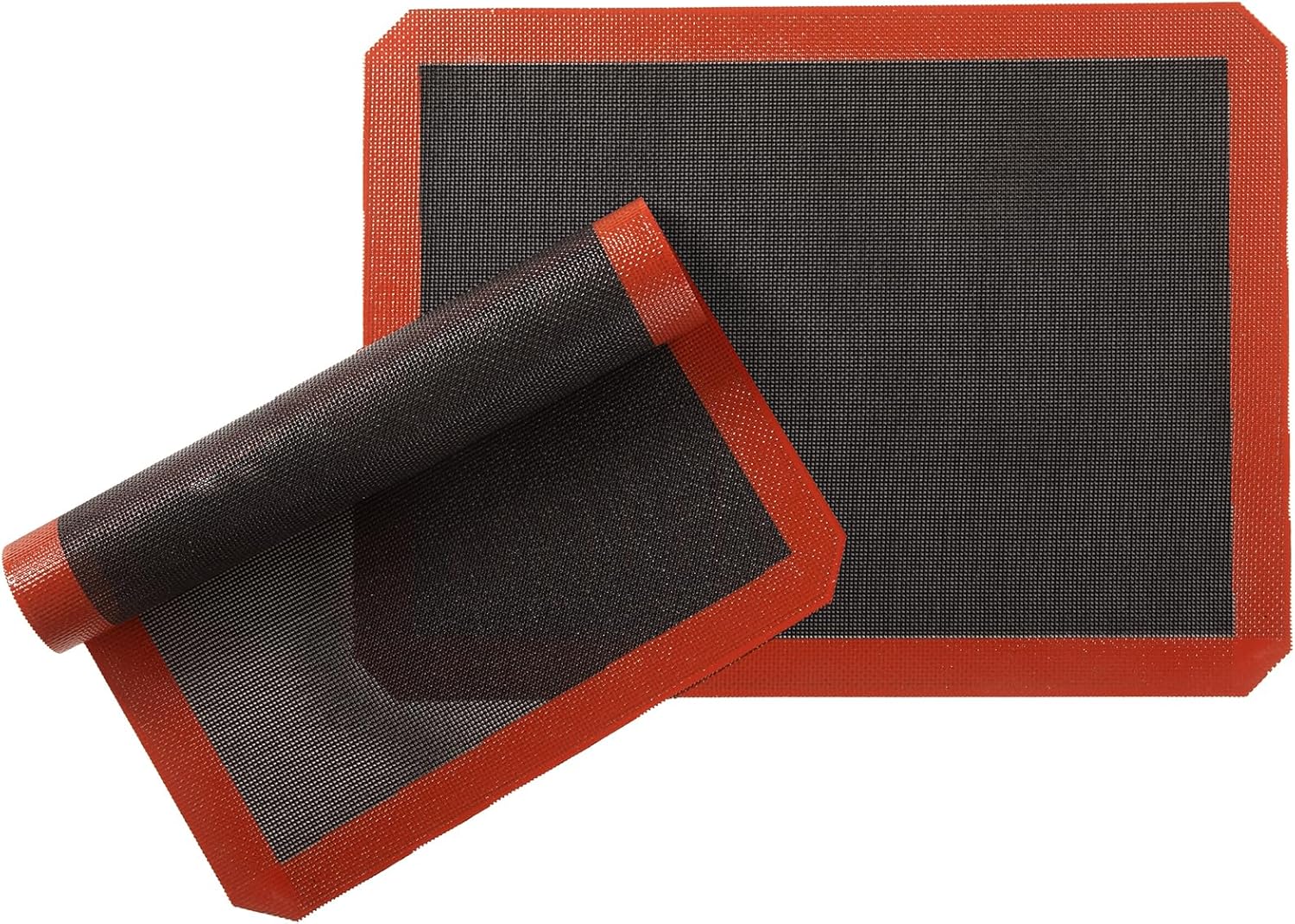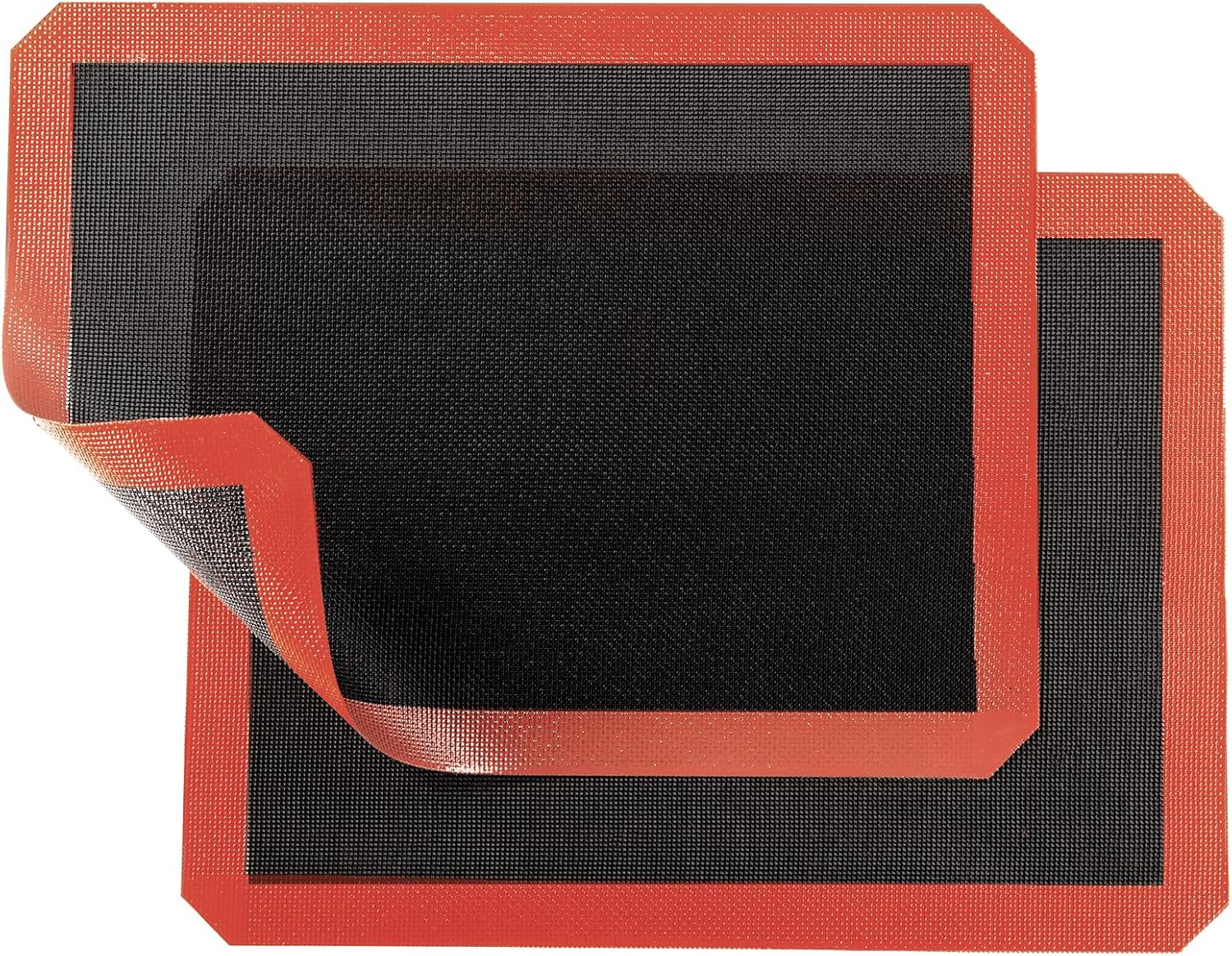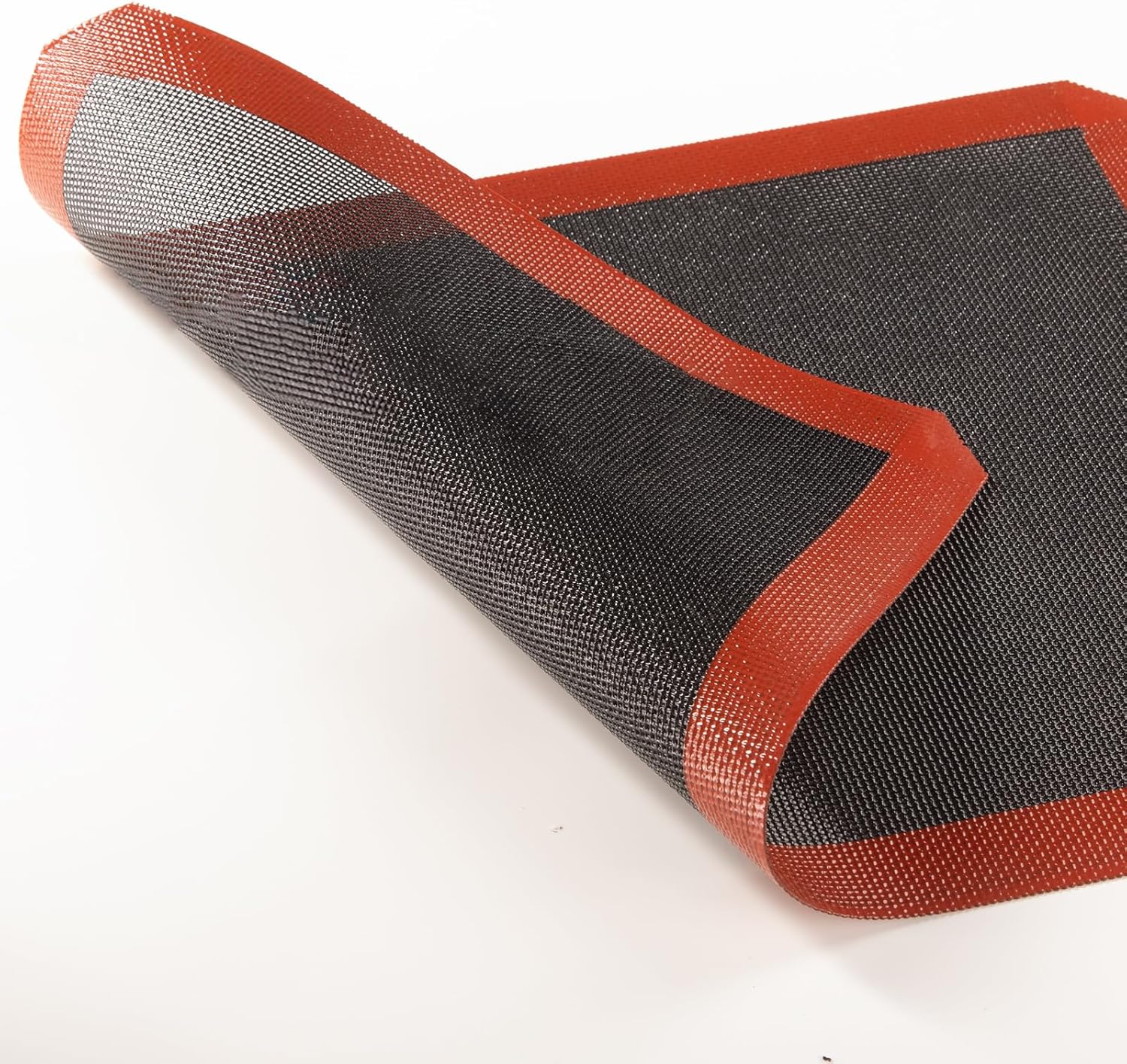 - The baking mat is made of food grade silicone and fiberglass, and the heat can be evenly distributed across the smooth surface of the mat, helping to prevent scorching on the edges and bottom, providing you with better tasting food.