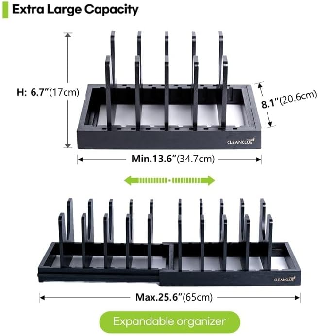 - Efficient Lid Storage - Featuring deep U-shaped dividers, this organizer provides an efficient solution for storing pots and lids with knobs, keeping them easily accessible and neatly organized