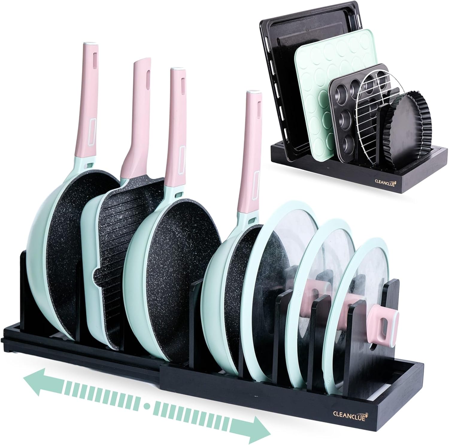 - Experience Lasting Durability and Natural Beauty - Crafted from 100% premium solid bamboo, offering sturdy construction and a beautiful natural look that is perfect for storing various cookware items like frying pans, skillets, and plates