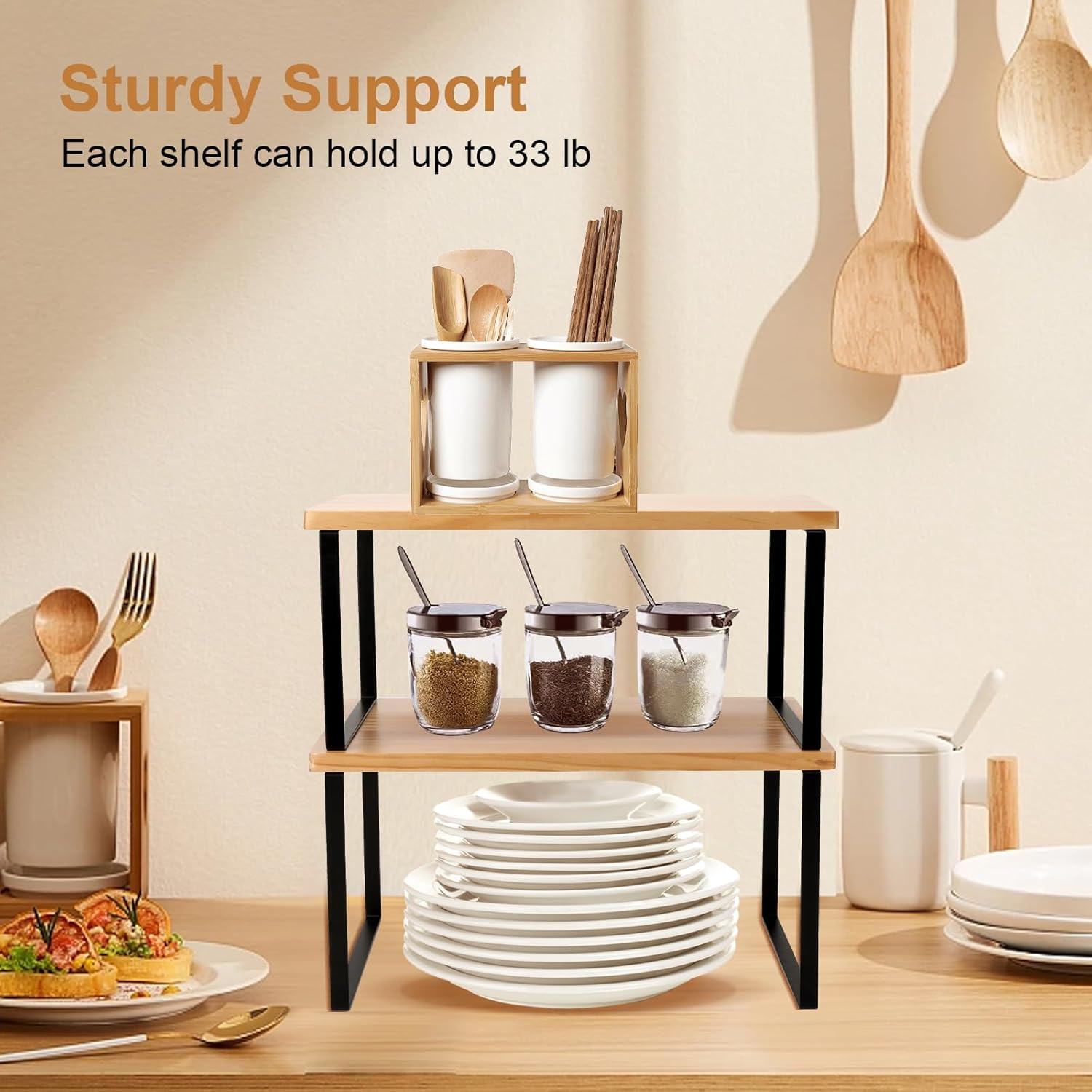Bamber Large Cabinet Shelf Organizers Solid Wood Spice Rack Organizer for Cabinet Kitchen Countertop Storage, 16.5x10 Inches, Set of 2
