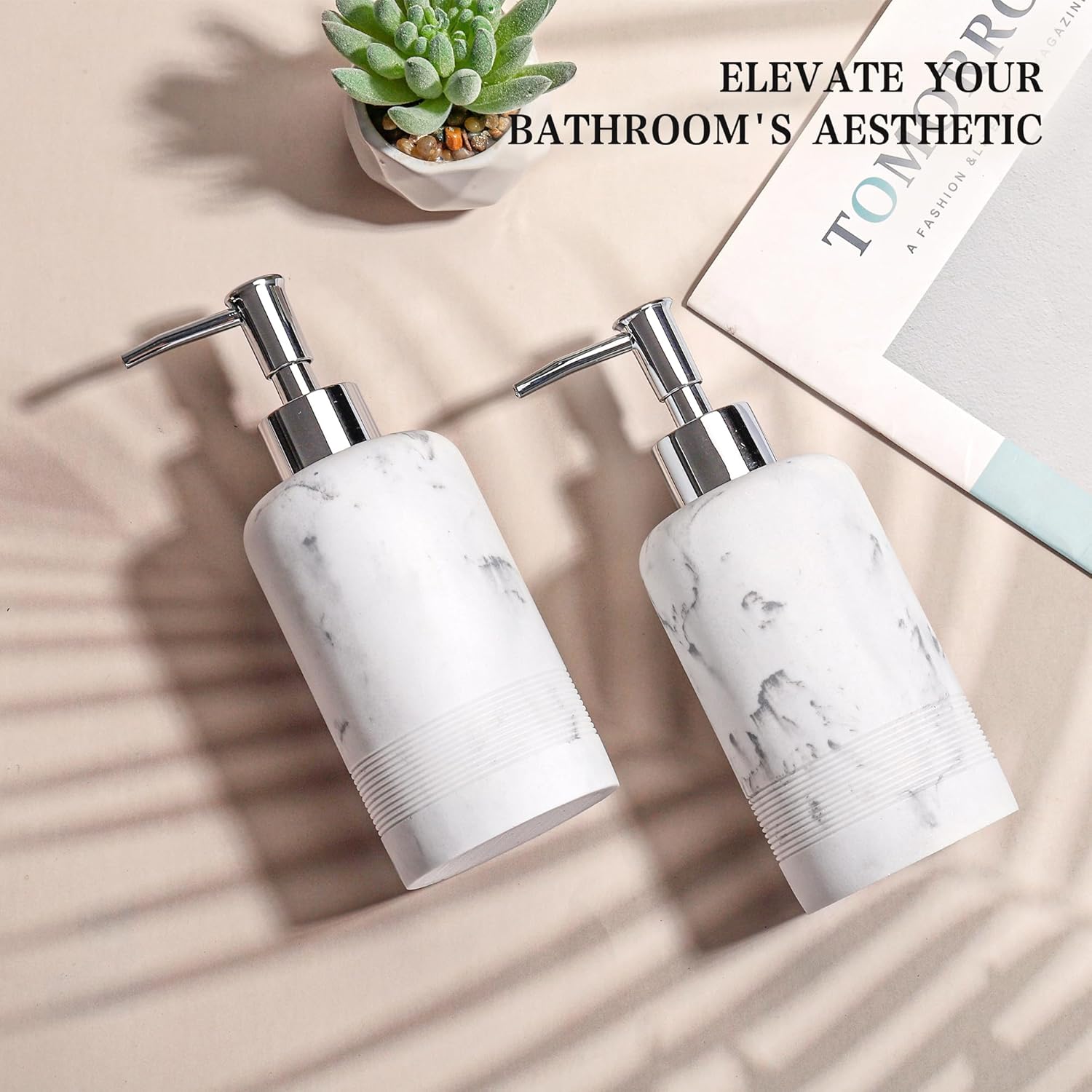 2pcs/Set Hand Soap Dispenser Sets - 10.8oz Refillable Resin Liquid Soap Dispensers with Rust-Proof Pump for Bathroom Countertop or Kitchen, Marble White