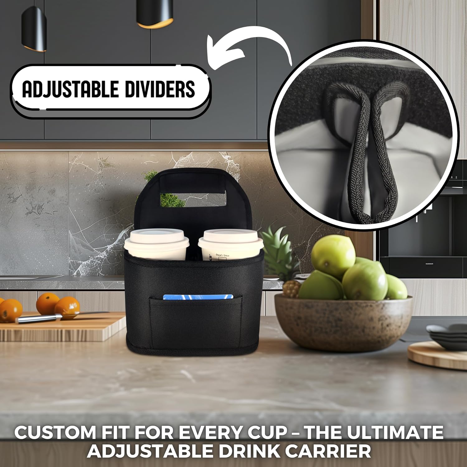 - Organized On-the-Go: Featuring organizer pockets, this carrier not only holds your drinks but also provides storage for small items like keys, sugar packets, or straws for added convenience.