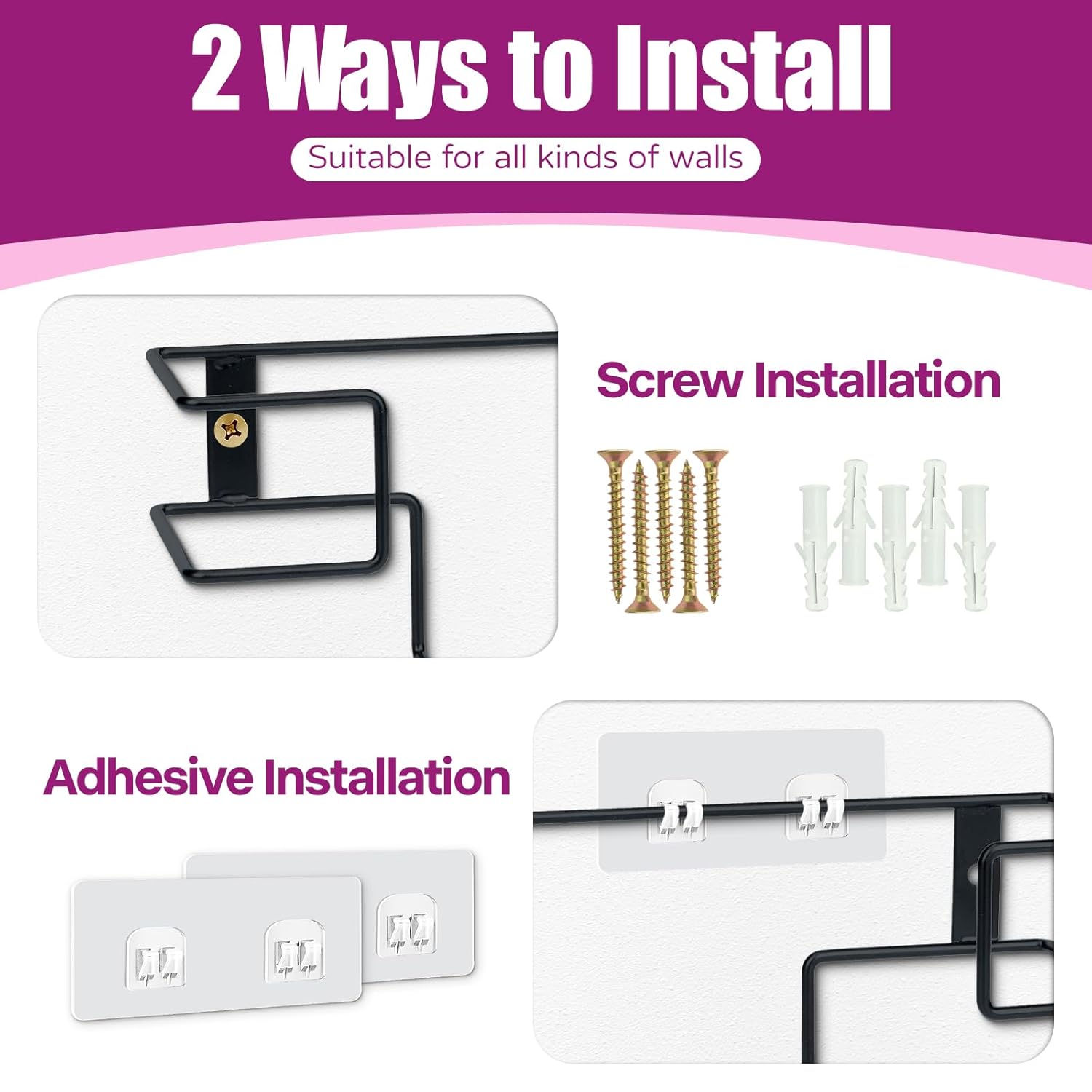 - Two Mounting Options:The glove rack comes with all the necessary hardware for installation, and it can be mounted on the wall or cabinet door using either adhesive hooks or screws, allowing you to choose the installation method based on your wall conditions.