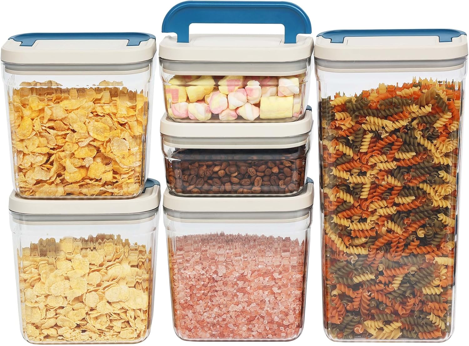 - Generous Capacity and Versatile Use: Each container boasts a spacious 0.6 Qt*2+1.6 Qt*3+3.4 Qt capacity, making it ideal for storing a wide range of food & drink, from pasta and cereals to coffe tea and baking ingredients. The large size and versatile functionality cater to diverse storage needs, promoting kitchen pantry organization and efficient space utilization
