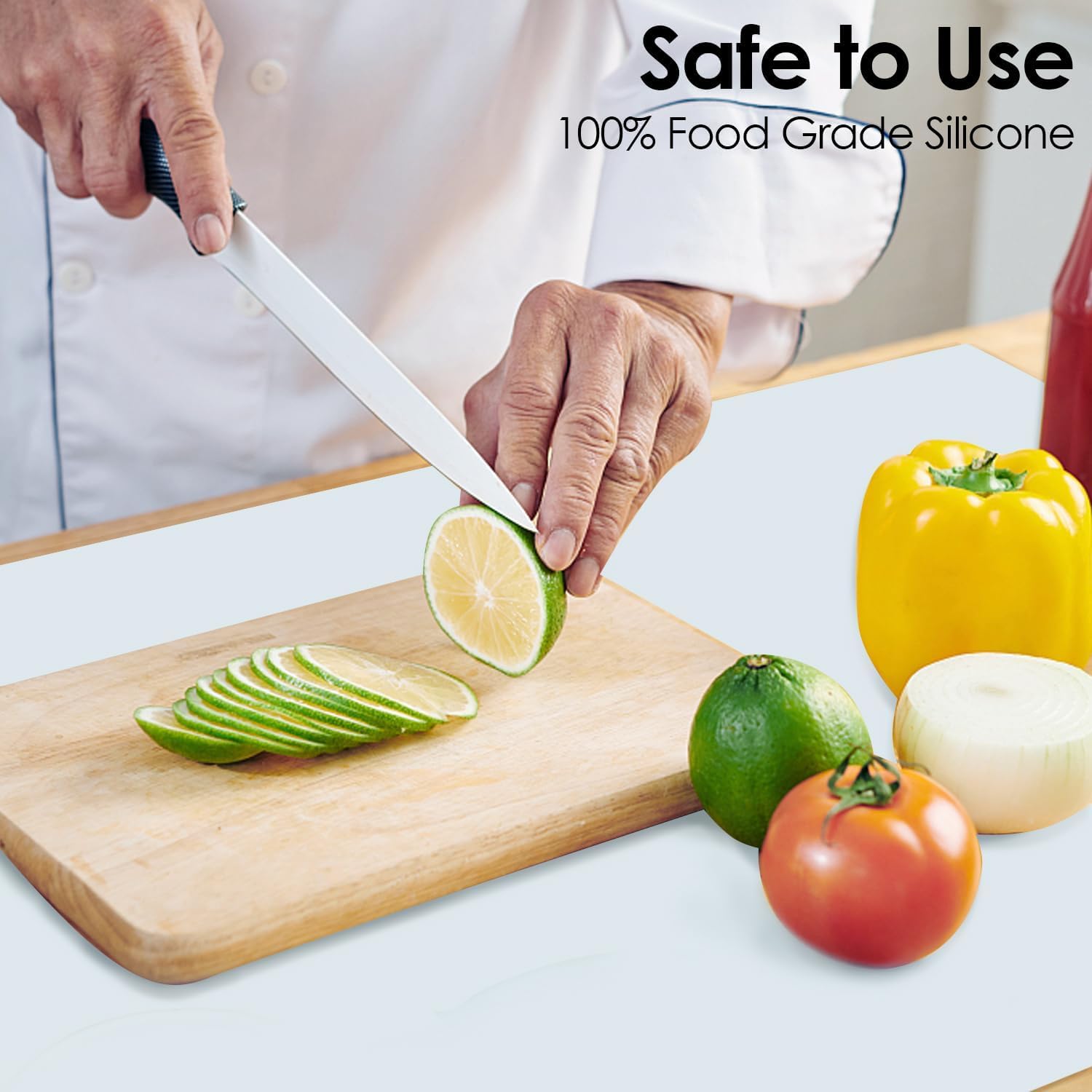 - 💕【 SAFE MATERIAL& LARGE SIZE】Our extra large silicone mat is made of high quality food-grade Silicone, BPA free, you can use it without any worry. Safe for Family and Kids. Size: 27.6x19.7 inches (70cm*50cm)1.2mm thick silicone mat. Very large and convenient to use on Thanksgiving dinner and Christmas gathering!