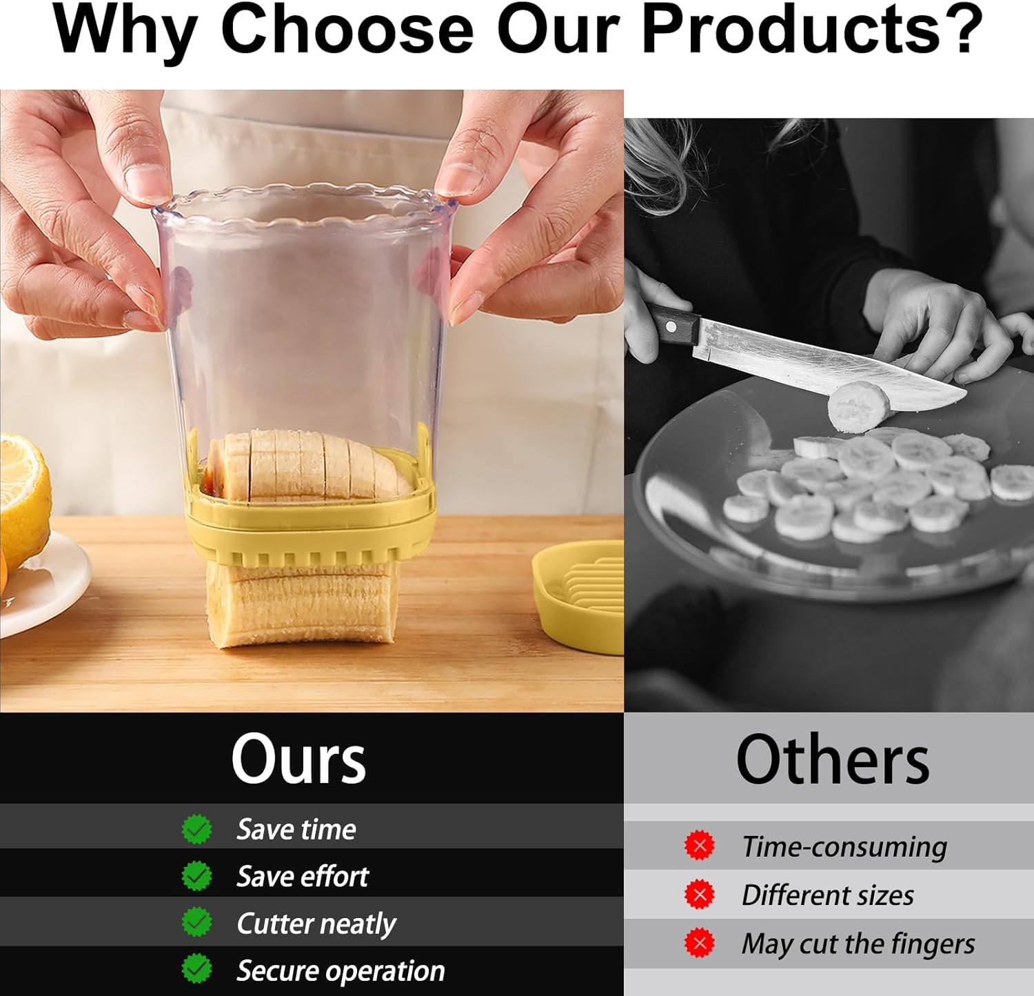 - Fruits Slicer: Fruit Slicers 8 times faster than a knife! Our fruit cutter makes prep a breeze. Easily cut 18 strawberries in 9 seconds, saving you time and energy. With this fruit chopper you can easily slice fruits and vegetables into more uniform shapes, save your time and make slicing fruits a breeze.