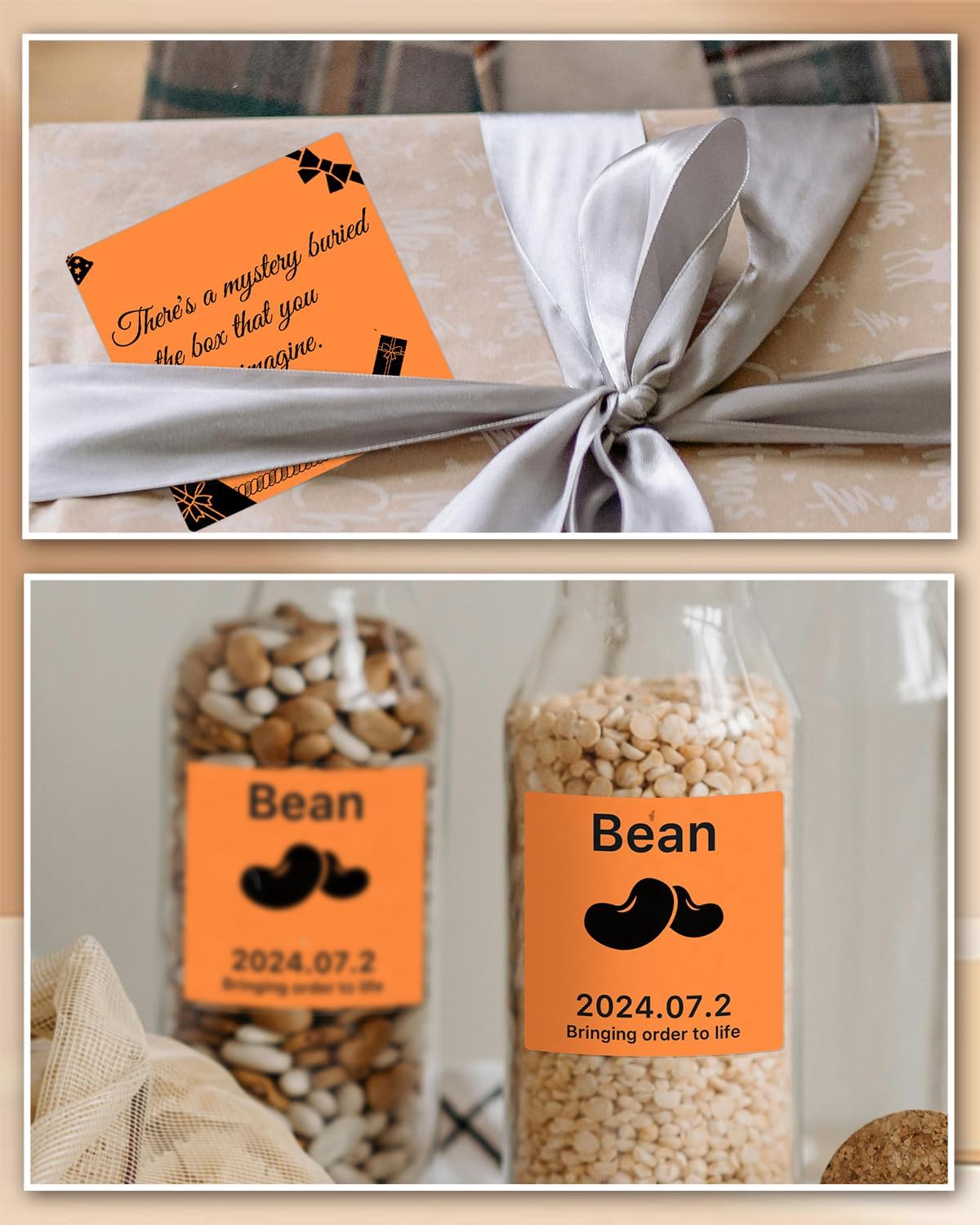- Water & Oil Resistant: The thermal label sticker is made of high quality materials, make it has water and oil resistant surface. Perfect for office supplies, home decor, name tag, boxes, containers, gifts, price tag, daycare, etc