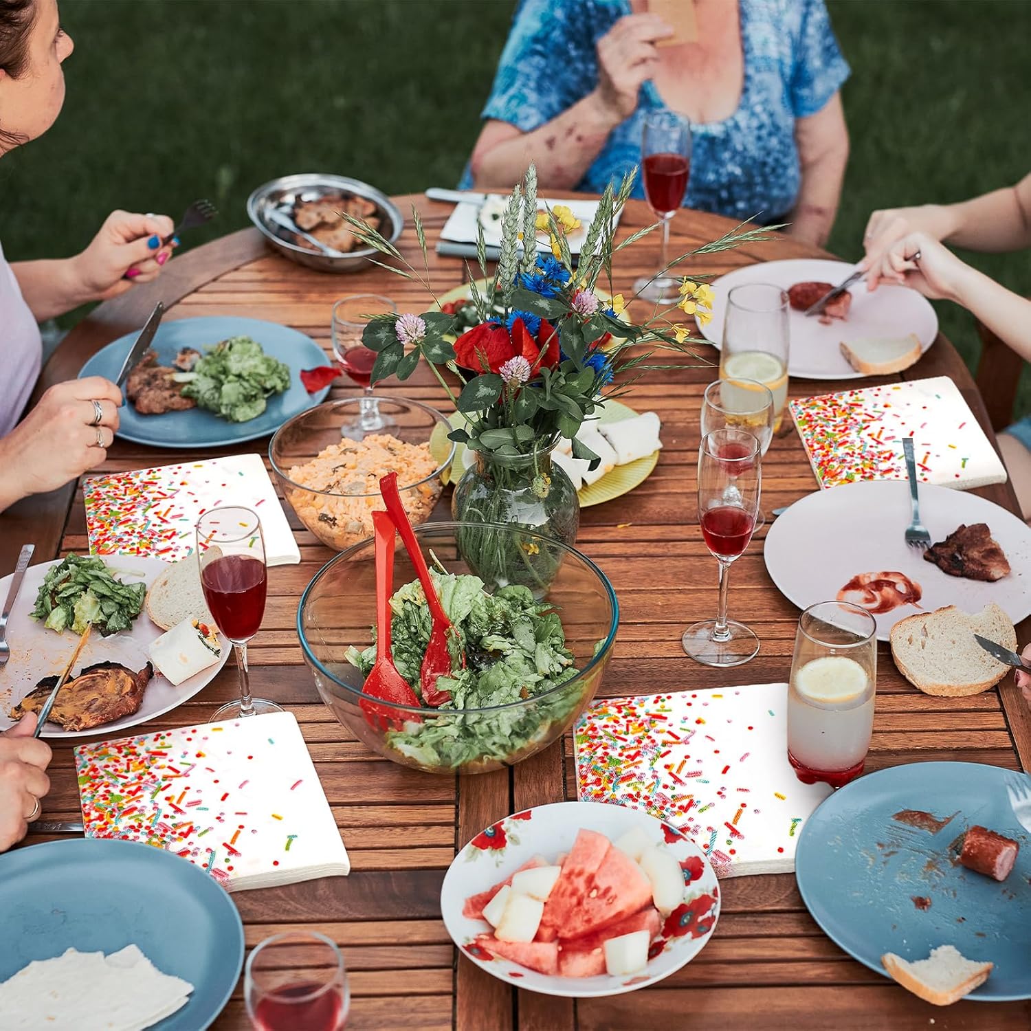 100 Pcs Sprinkles Napkins 2 Ply Disposable Paper Napkins for Baby Shower Birthday Party Theme Table Decor Supplies(White,Confetti)