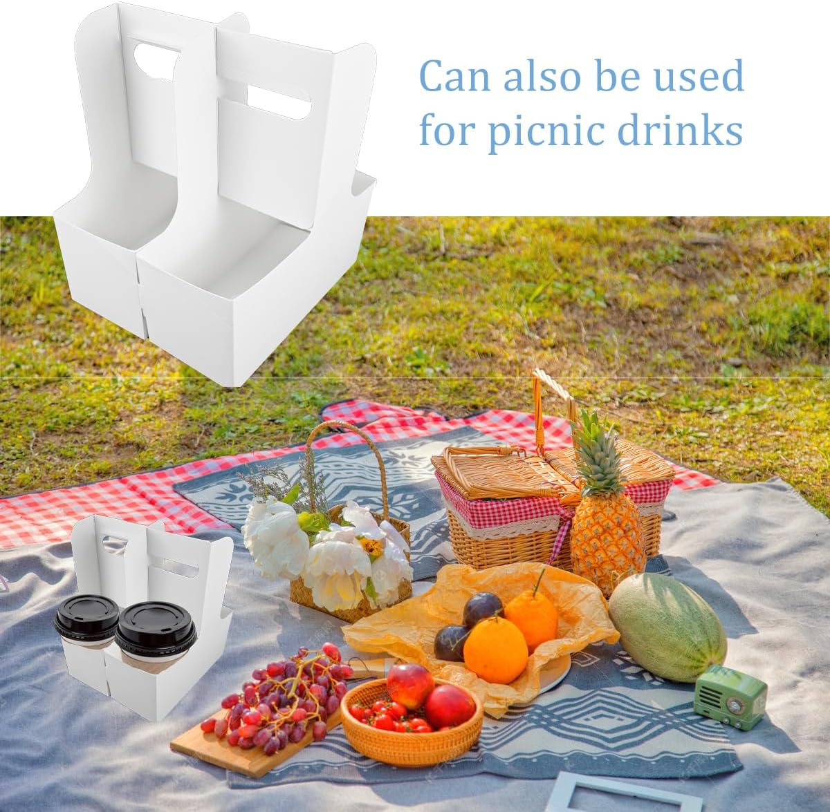 - 【Package Content】20 count white drink carrier with handle kraft paperboard cup holder great for small, medium, and some large drinks cold or hot