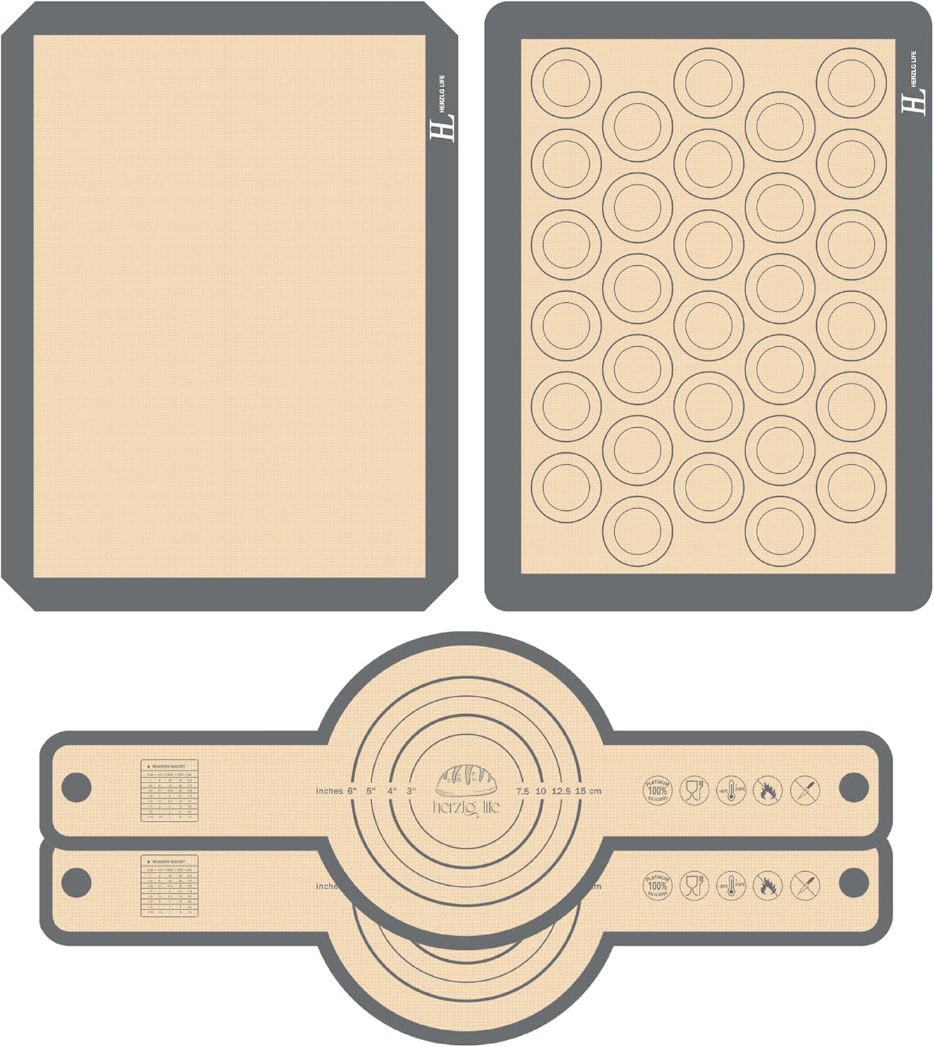 Silicone Baking Mat Cookie Sheet for Oven, Non-Stick Reusable Food Safe silicone mats for baking, Baking Sheet Liner, Oven Baking Sheet for Making Bread, Cookies,Macaron,Pizza(1+1 +2)