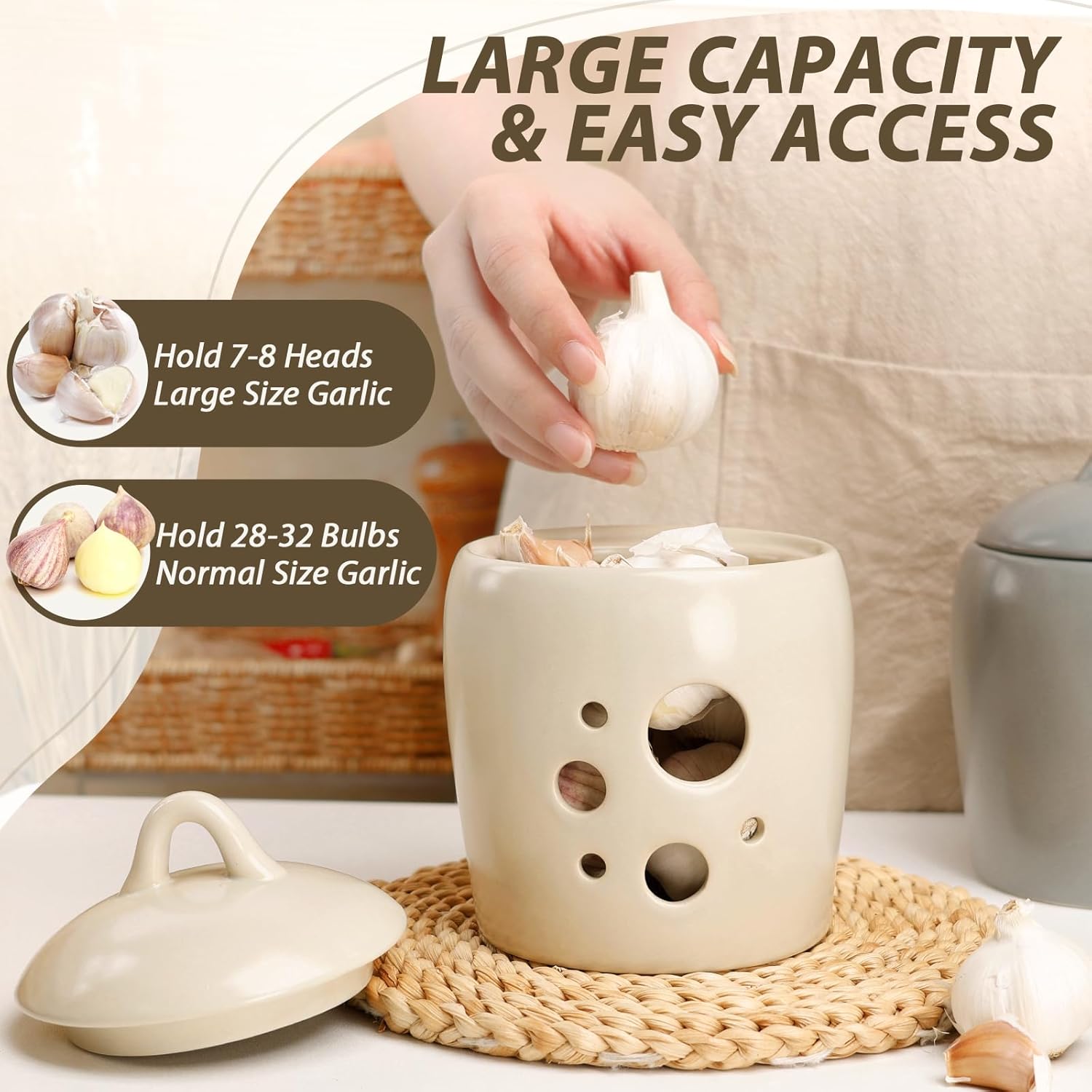 - Elegant Beige Ceramic Design: Made from premium gray ceramic, this garlic container storage boasts a sleek and elegant look that complements any kitchen décor, serving as both a functional and decorative piece