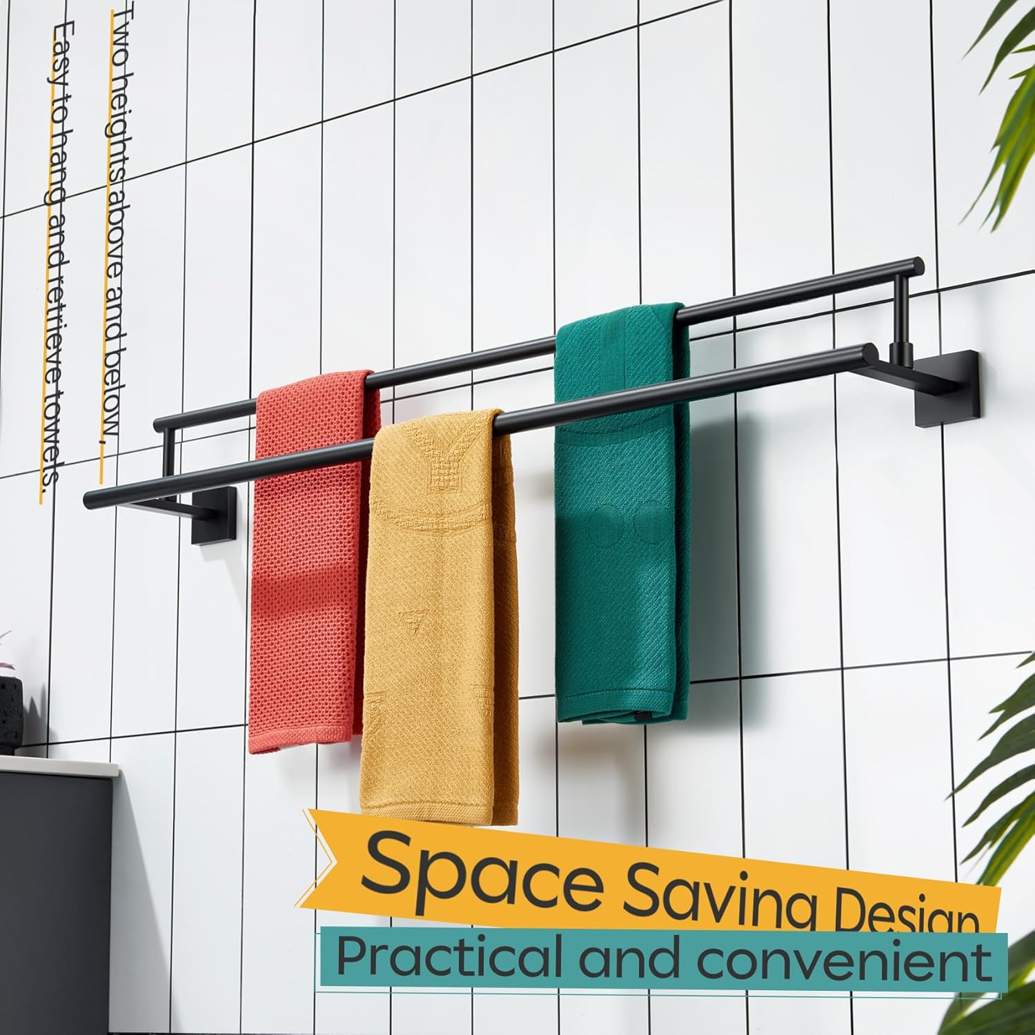- ◄ MODERN DESIGN ► KOKOSIRI double towel rack with two rails combines elegant square, sleek round, and unique rectangle elements to bring a modern aesthetic to your bathroom, shower room, toilet, kitchen, washroom, pool or garage. You can choose from our series of bathroom hardware for a complete, coordinated look to your place