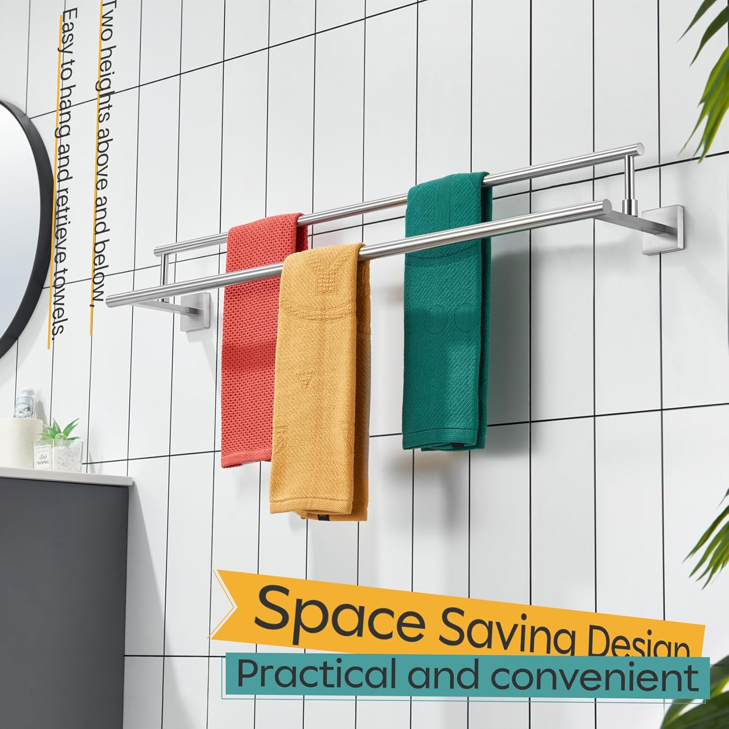 - ◄ PREMIUM MATERIAL ► KOKOSIRI Double Towel Bars made of SUS304 Stainless Steel and features an all-metal design using high-grade steel to resist rust and corrosion from daily use. For your health, all the materials we use are the highest quality and harmless. You can rest assured to use all of our products