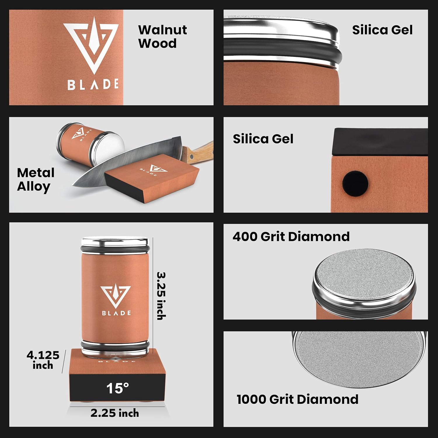- Professional Precision at Home - Achieve professional-level sharpness with BLADE by Hugo & Jude rolling knife sharpener kit. Simply adjust the knife sharpener roller to your desired angle, from 15° to 20°, to sharpen both Asian and Western knives effortlessly, ensuring flawless cuts every time.