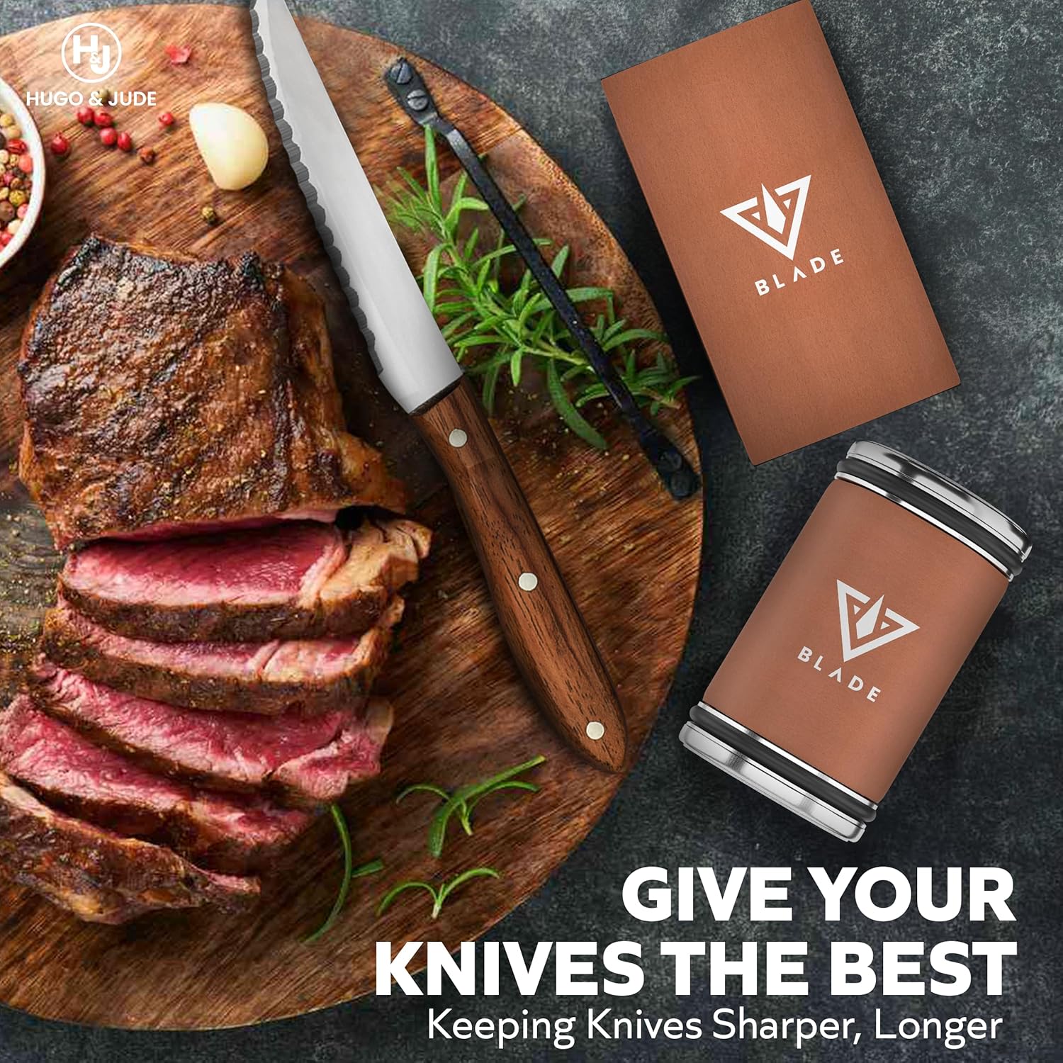 Hugo & Jude BLADE Rolling Knife Sharpener - Sharpening Made Easy with Ergonomic Diamond Rolling Wheel Sharpener, 15° & 20° Magnetic Angles for Kitchen Knife Sharpener - Kitchen Gadgets Gifts