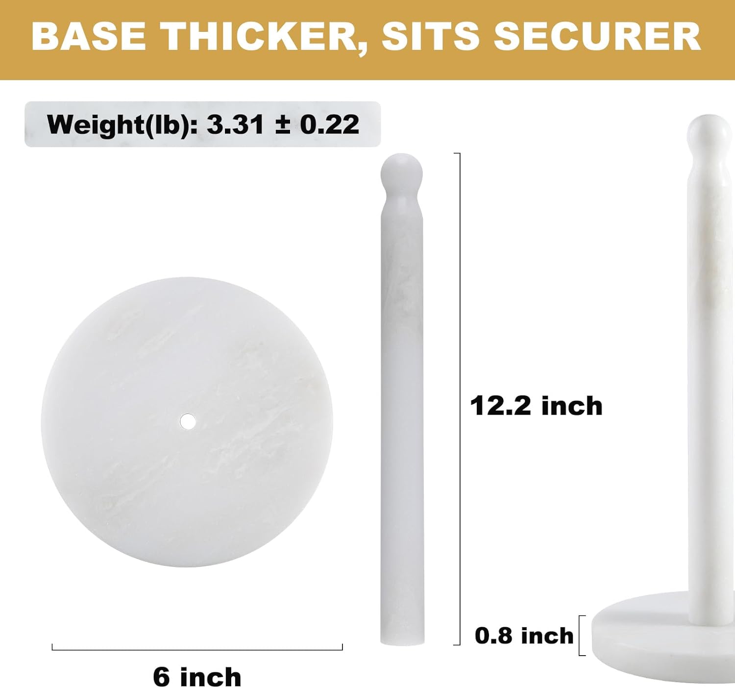 - Sturdy and Durable: Koville’s high quality paper towel holder is made of heavy marble hand-polished, smooth and delicate touch surface, keep the paper towel holder super sturdy and won't tip over