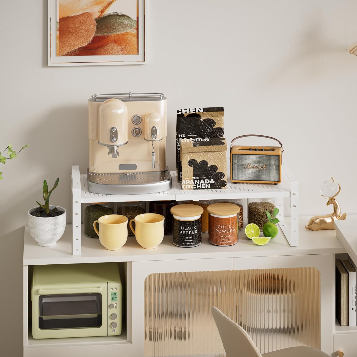 Expandable,Adjustable & Stackable Spice Rack, Cabinet Kitchen Countertop Shelf Organizer,Metal Pantry Storage Shelves - Space-Saving Storage Solution(1Pack/White/Large)