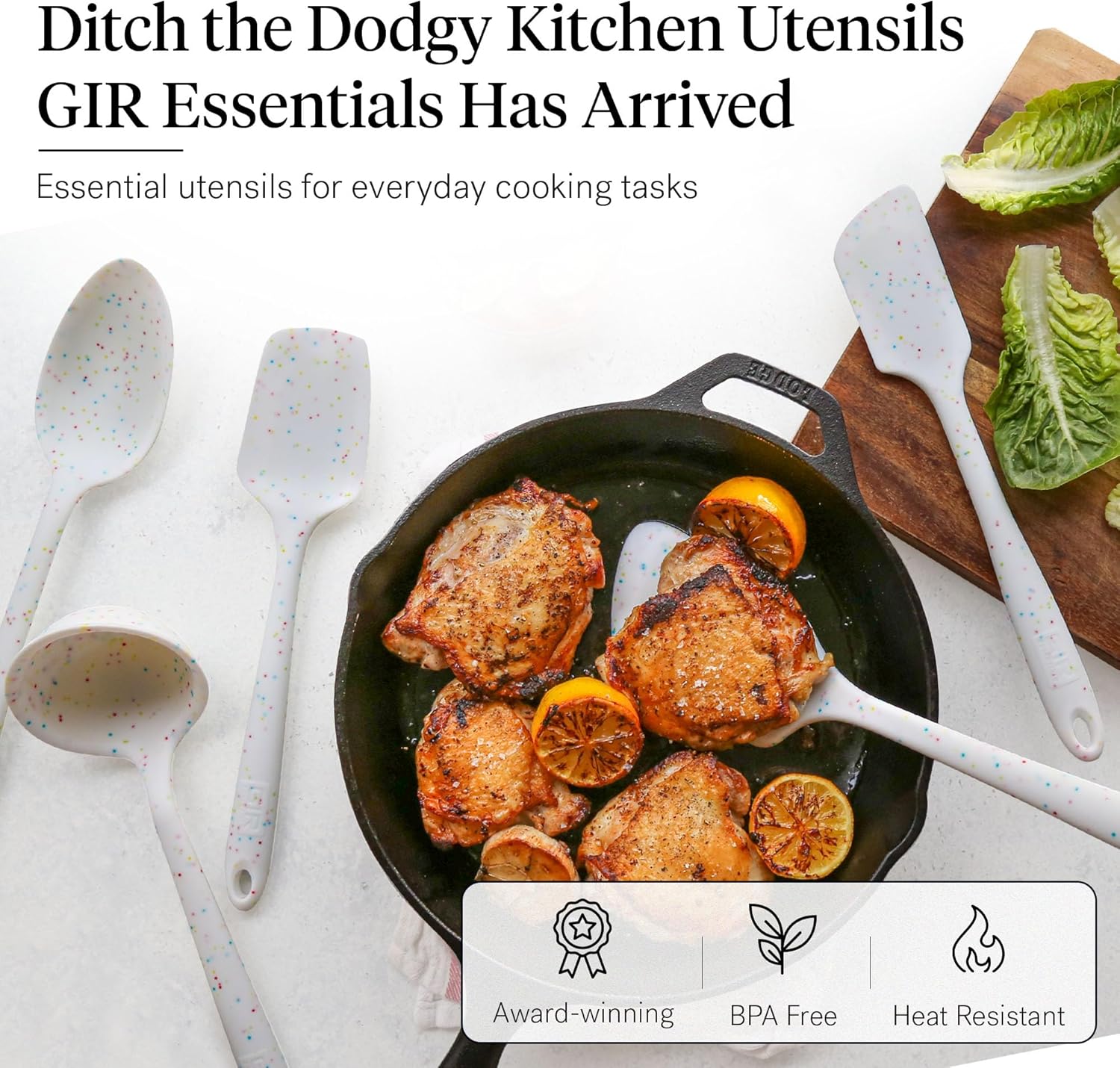 GIR: Get It Right 5-Piece Silicone Essentials Kitchen Utensils Set - Ladle, Spatula, Flip, Spoon & Spoonula - Non-Toxic Cooking Utensils for Nonstick Cookware, Cooking and Baking - Party Confetti