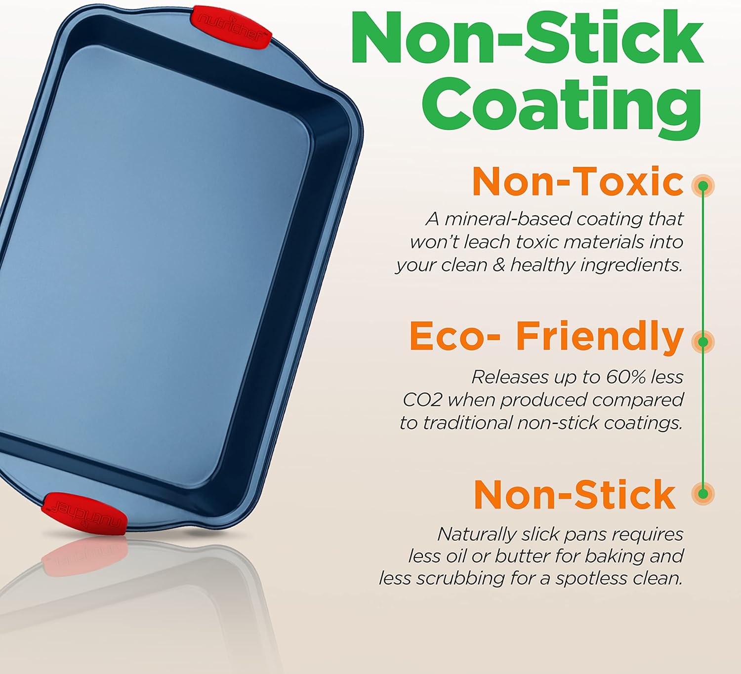 - DELUXE NONSTICK BAKEWARE – Elevate your baking with this bakeware set, featuring stylish blue silicone coating and red silicone handles. Perfect for both professional chefs and home bakers, ensuring effortless food release and even baking every time.