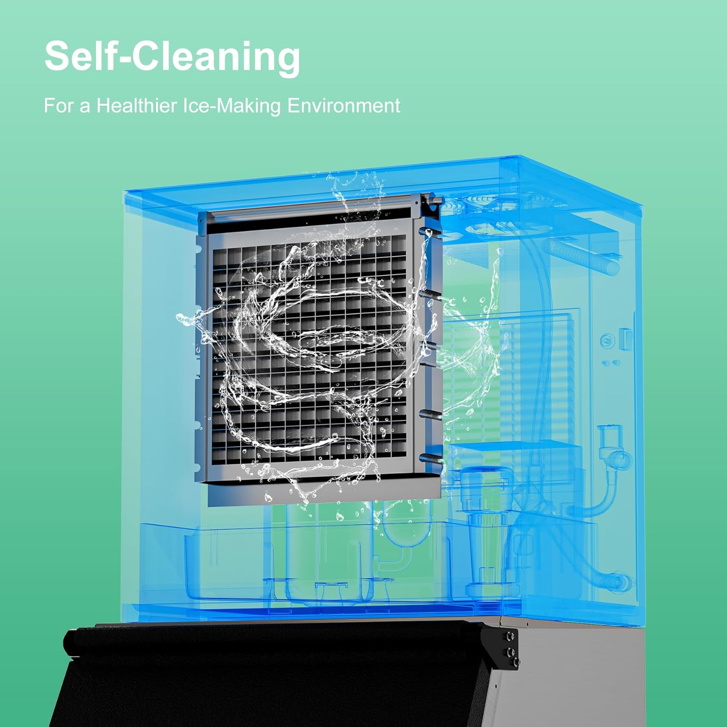 - 【Smart Control】Equipped with an intuitive LCD control panel, you can easily preset and monitor the ice making process in real time. Our commercial ice machine also has an automatic cleaning function, which makes it easier to keep the ice tray clean. At the same time, it is equipped with a diagnostic system that can instantly detect and display potential faults on the screen, helping users quickly troubleshoot problems and ensure stable operation of the machine.