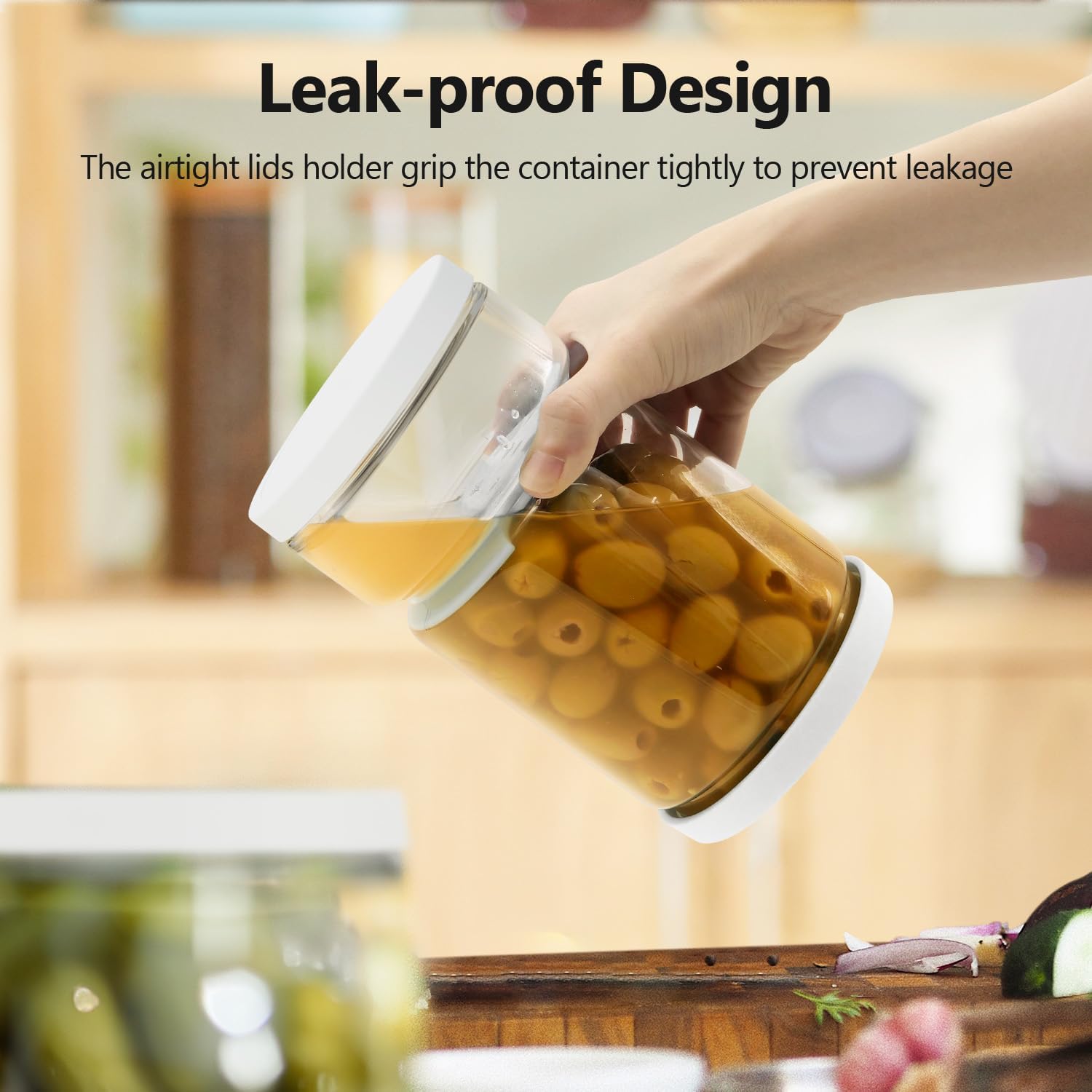 Glass Pickle Container with Strainer for Pickle Lover - 45OZ Leakproof Juice Separator Jar for Gherkin, Olive or Chilli, Dishwasher and Refrigerator Safe, BPA Free (White, 45 oz*2 pcs)