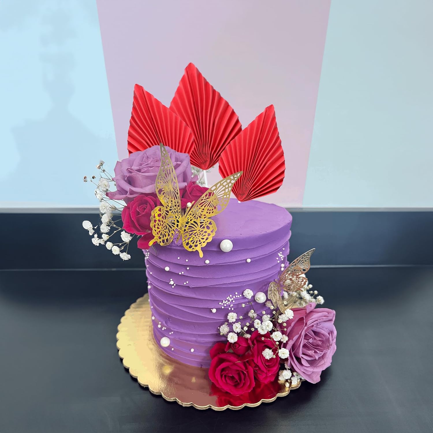 Gyufise 6Pcs Paper Palm Fan Cake Toppers Palm Spear Leaves Fan Cupcake Toppers Cake Insert Decorations Craft DIY Cake Bakeware Decoration for Birthday Party Wedding Party Decor Supplies Red