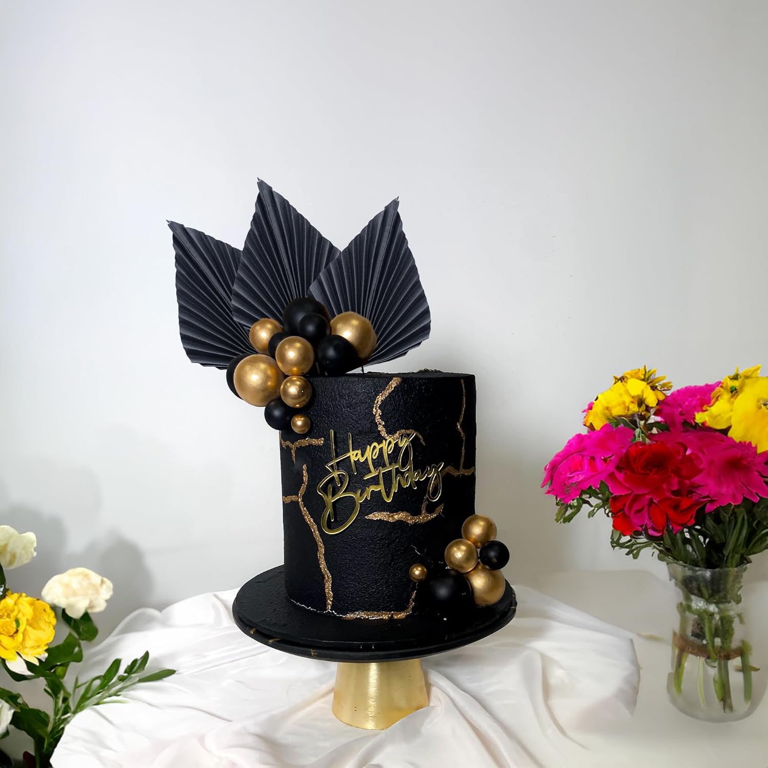 Gyufise 6Pcs Paper Palm Fan Cake Toppers Palm Spear Leaves Fan Cupcake Toppers Cake Insert Decorations Craft DIY Cake Bakeware Decoration for Birthday Party Wedding Party Decor Supplies Black
