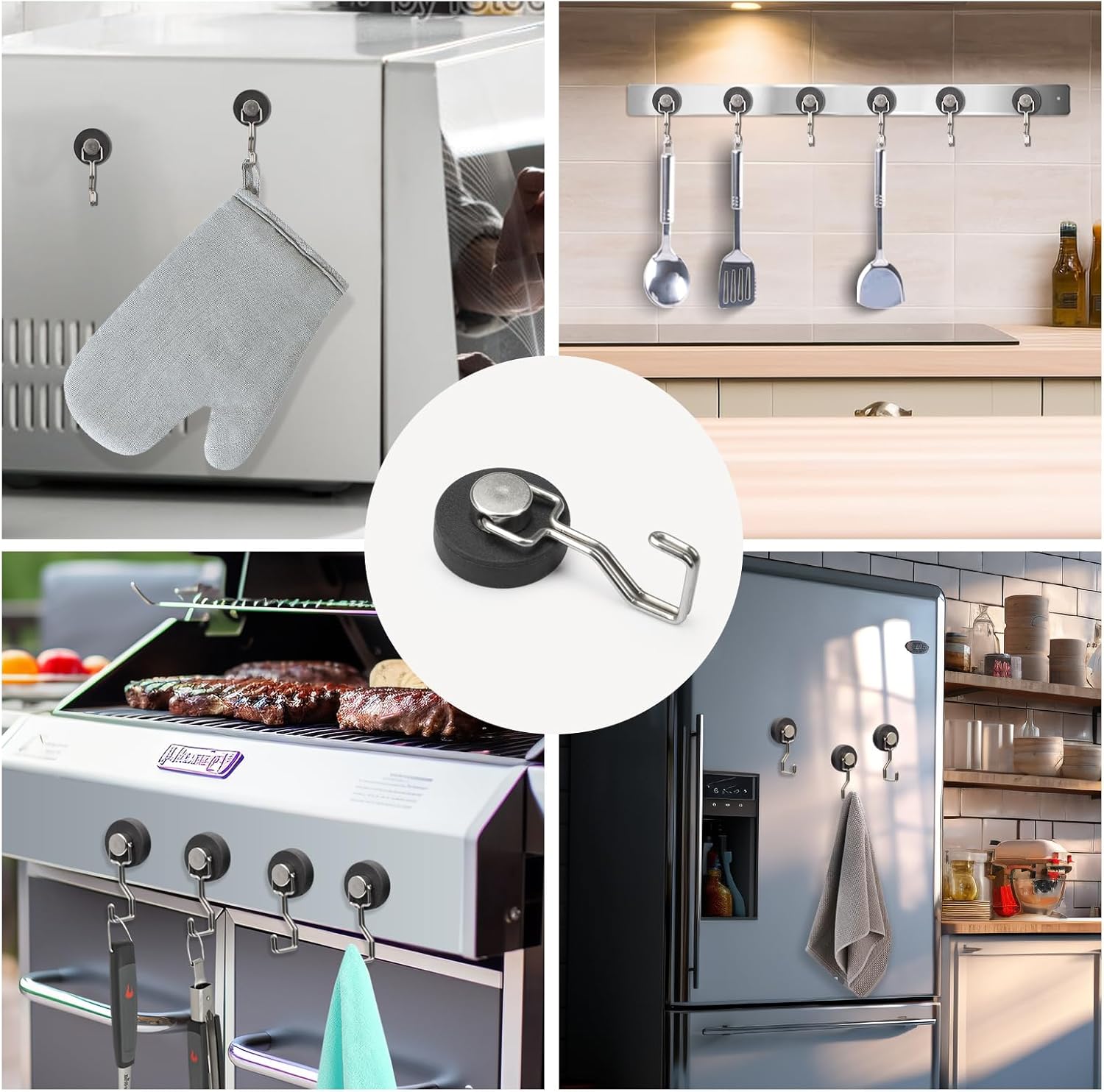 Heavy Duty Magnetic Hooks for Grill, Refrigerator & BBQ – 4-Pack Strong Magnet Hooks for Hanging Grill Tools, Kitchen Utensils, Towels & Outdoor Camping Accessories