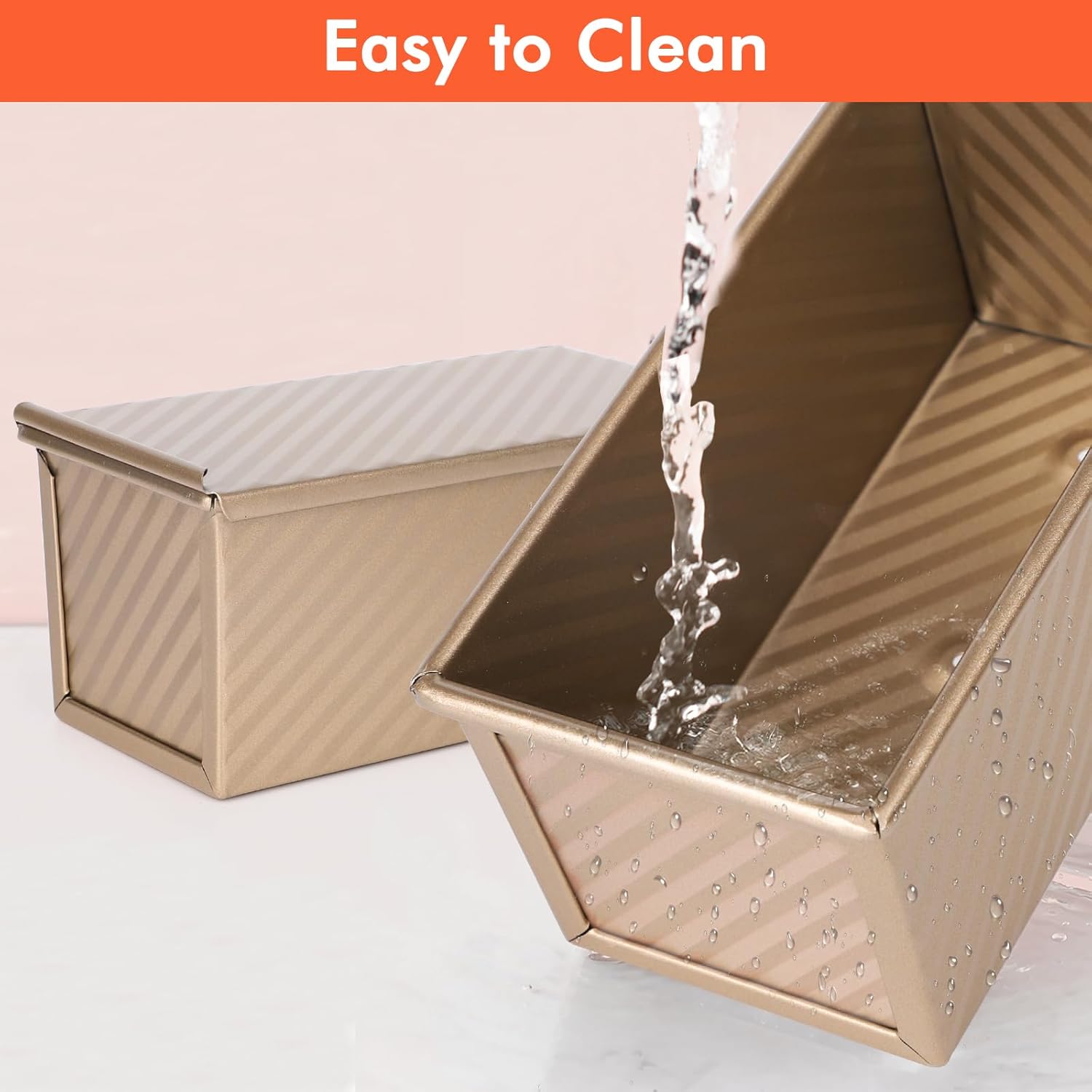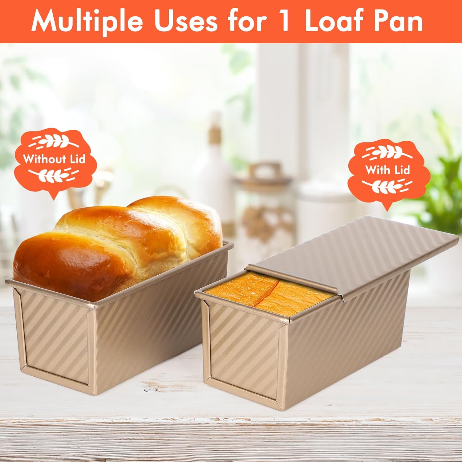 Beasea Pullman Loaf Pan with Lid, 2 Pack 0.5 lb Small Non-Stick Bread Loaf Pans Carbon Steel Mini Bread Toast Box for Homemade Bread Toast Oven Baking - Gold
