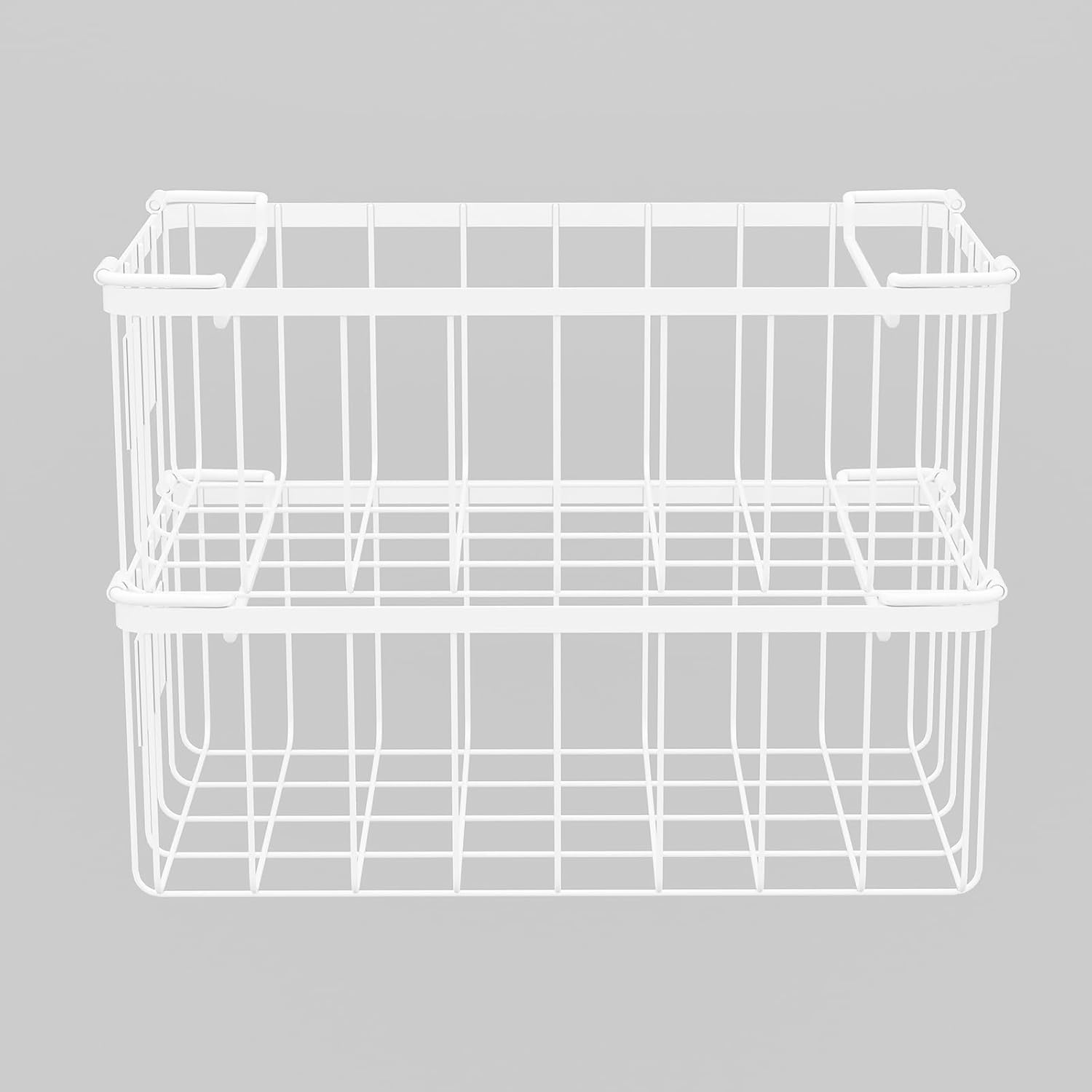 - Easy to Get & Rearrange: Fold down the handles to stack the chest freezer organizer bins to fully use the freezer space; Easily lift the entire basket to access items you need, When organizing the freezer, you just need to rearrange the freezer bins, without having to rearrange each package of food