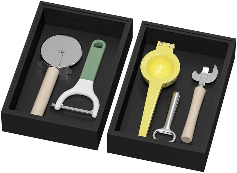 Bamboo Drawer Organizer, Cutlery Silverware Organizer for Kitchen Drawer, Stackable Utensil Organizer, 2 Pcs Flatware Organizer, Wooden Storage Box Tray (Black, 9 X 6 X 2 Inch)
