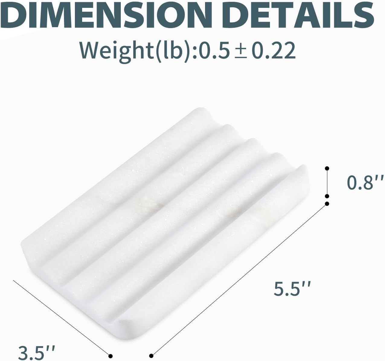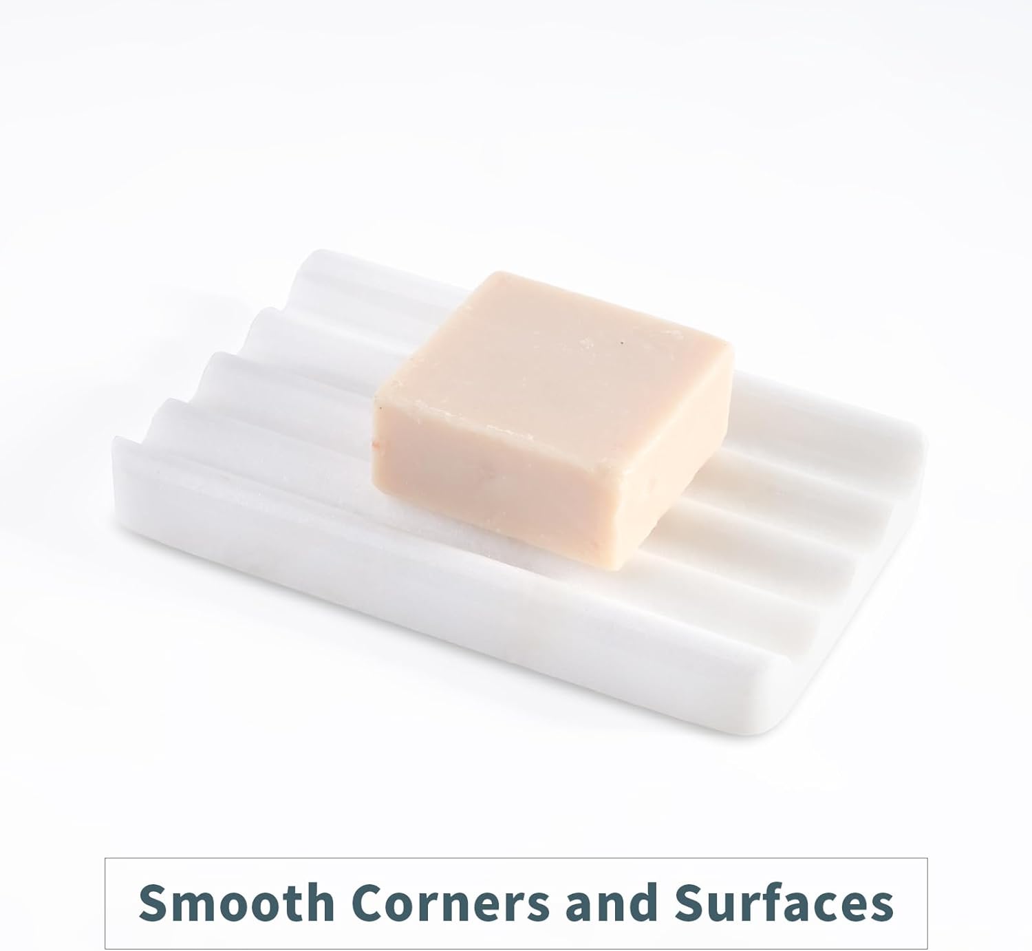 - EXCELLENT DESIGN: Square bar soap dish for holding soap, designed in a wave shape with raised edges. This soap dish drains the soap effectively, preventing it from slipping out and keeps soap clean and dry. The heavy marble soap holder comes with 4 non-slip pads, the pads are under the box for better water leakage.