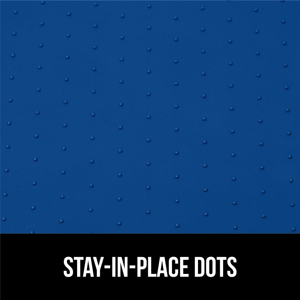- STAYS IN PLACE: designed to lay flat and grip your cabinets, mat stays in place with daily use taking items in and out; raised silicone dots on the topside help prevent items from slipping and sliding around the mat