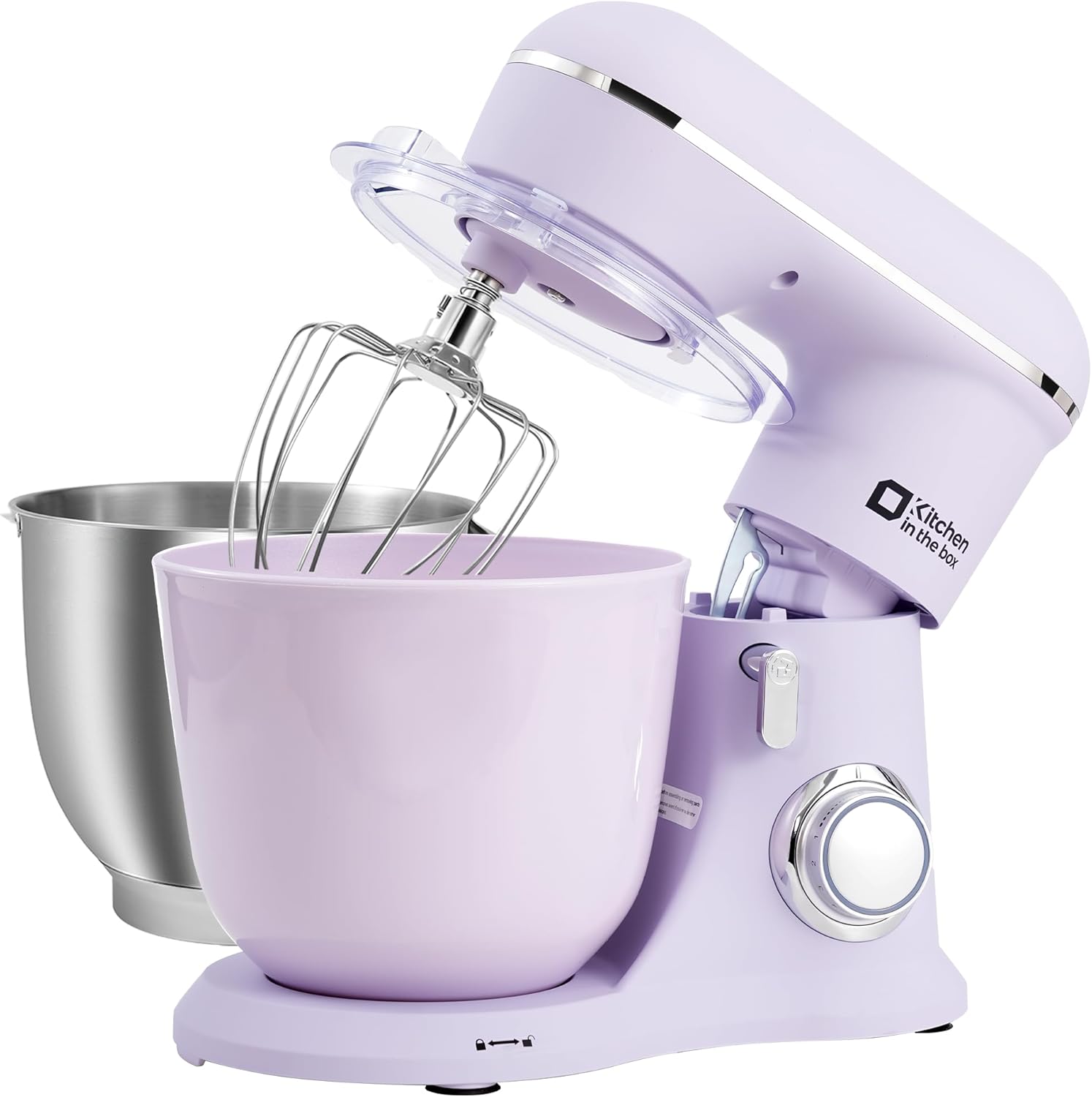 Kitchen in the box Stand Mixer, 4.5QT+5QT Two bowls Electric Food Mixer, 10 Speeds 3-IN-1 Kitchen Mixer for Daily Use with Egg Whisk,Dough Hook,Flat Beater (Lilac, 5QT)