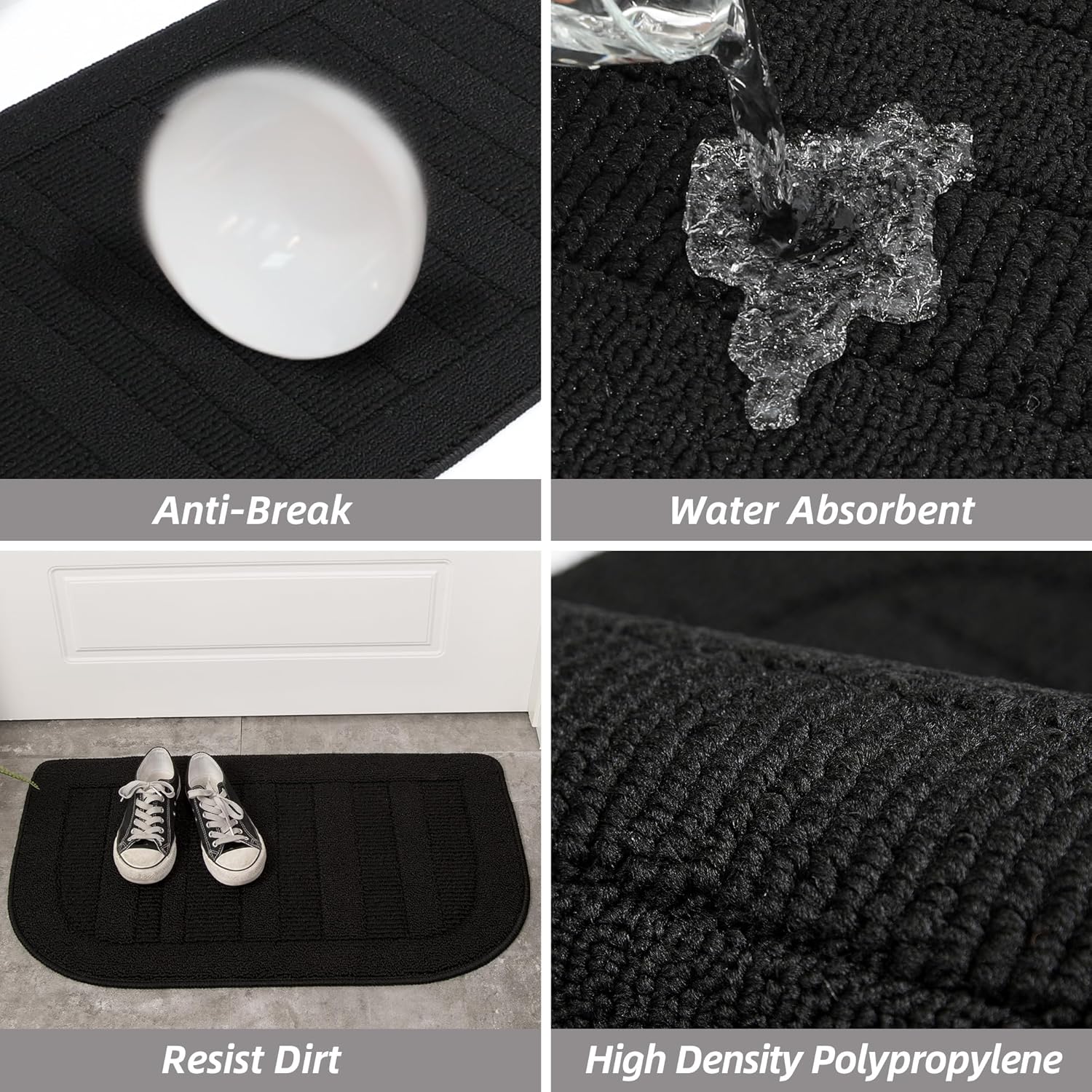BEQHAUSE 24x36 Inch Kitchen Rug Mat Durable Kitchen Rugs Non-Slip Washable Absorbent Kitchen Mats for Floor Dirt-Resistant Semicircular Kitchen Mat (Black)