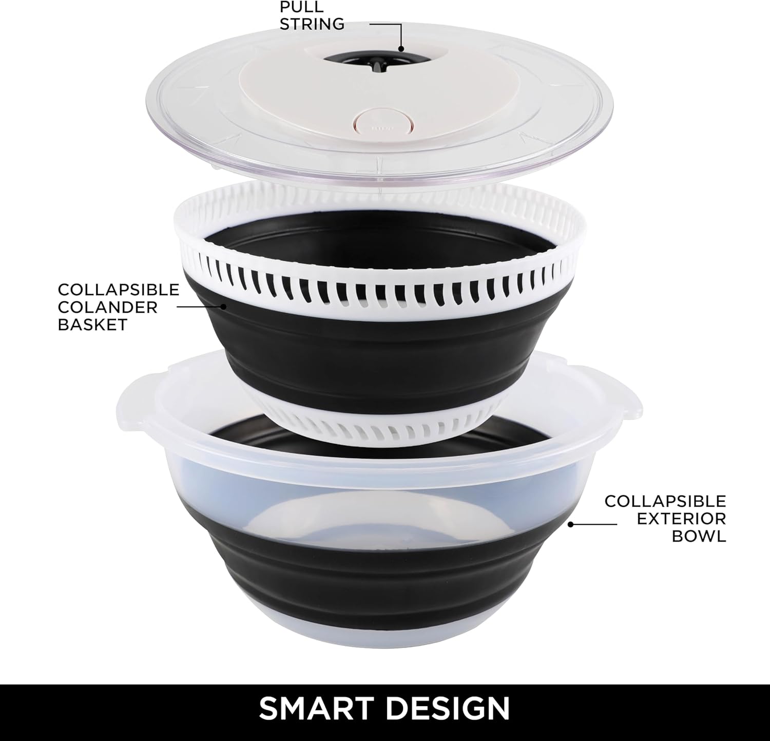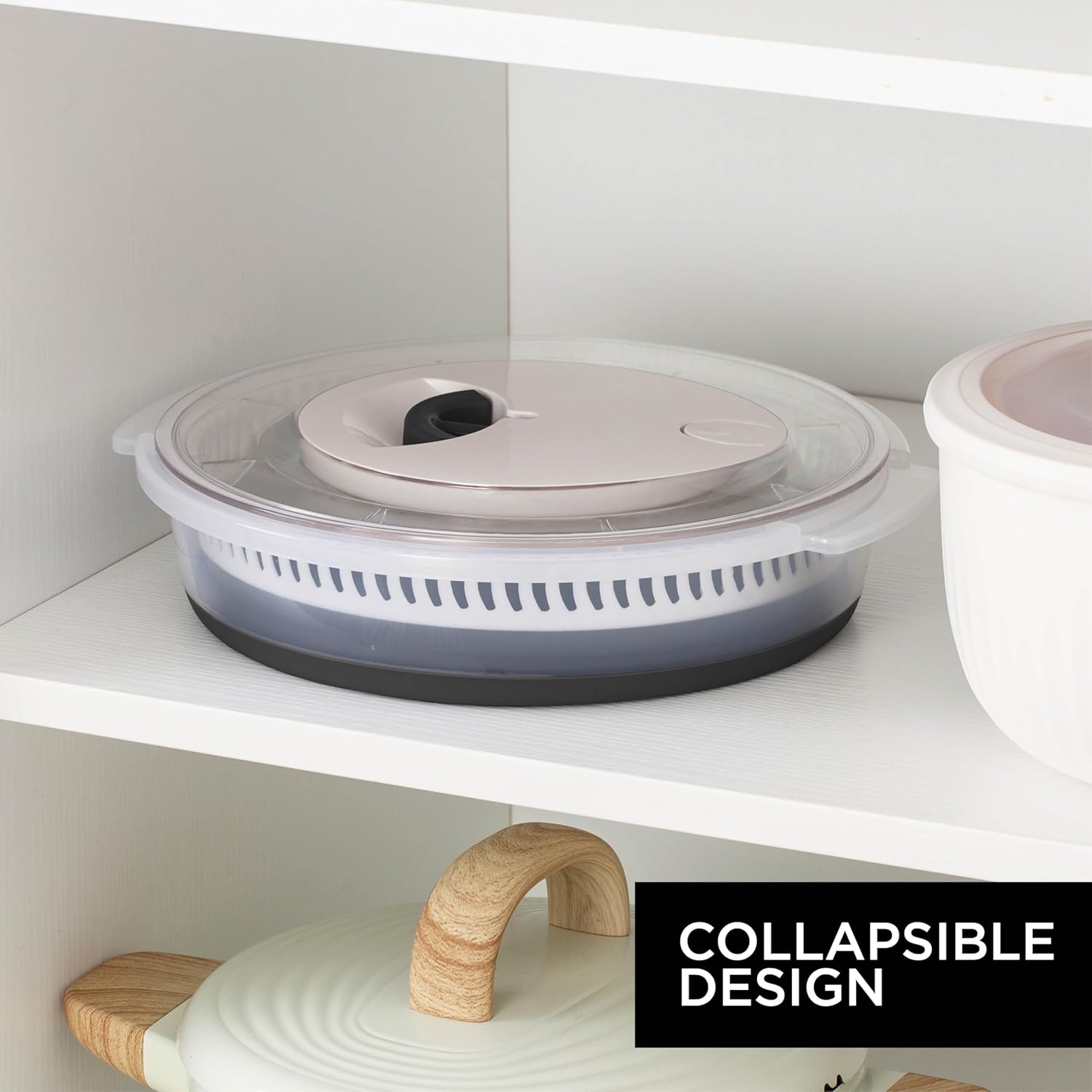 - Multifunctional Salad Spinner: This is not your ordinary salad spinner. It's also a collapsible bowl and colander, making it a versatile addition to your kitchen. Use it as a salad spinner to dry your lettuce and then easily transform it into a bowl for serving. Also works great as a berry spinner!