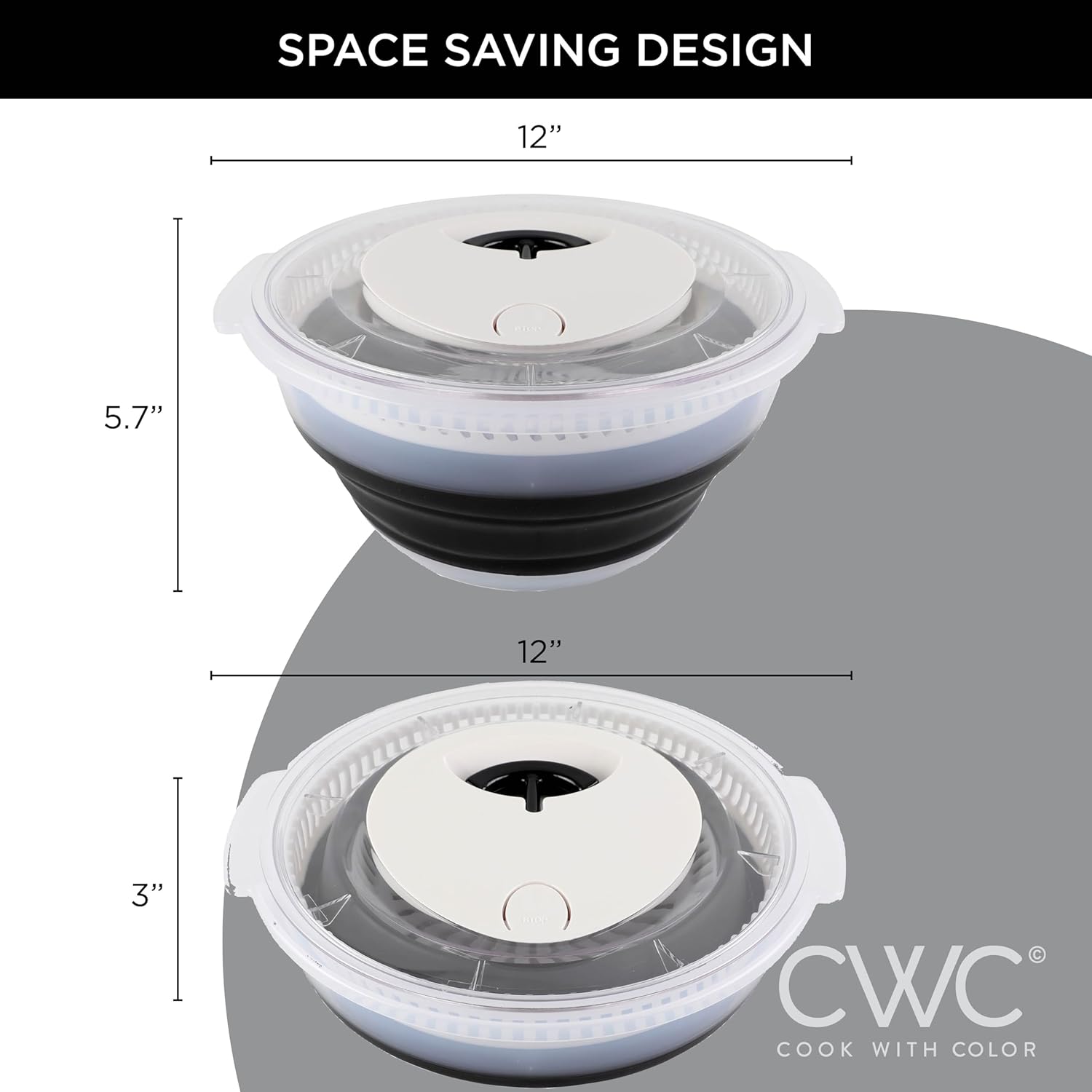 - Compact and Space-Saving: Our salad spinner is designed to be compact and space-saving. When not in use, it collapses for convenient storage. It's an ideal choice for small kitchens, RVs, or for anyone who values space-saving kitchen gadgets.
