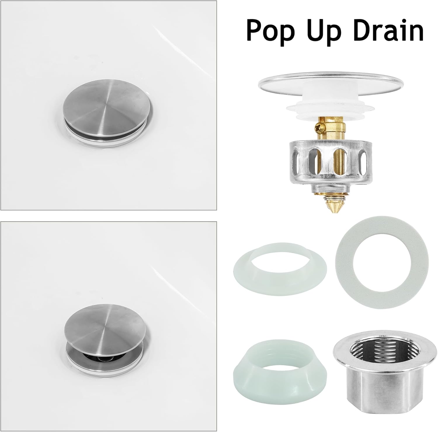 - Built-in Strainer: The Pop Up Drain comes with a detachable strainer basket that not only can prevent debris clogging the drain, but also can catch hair and trinket. Anti-blocking, easy to remove and clean