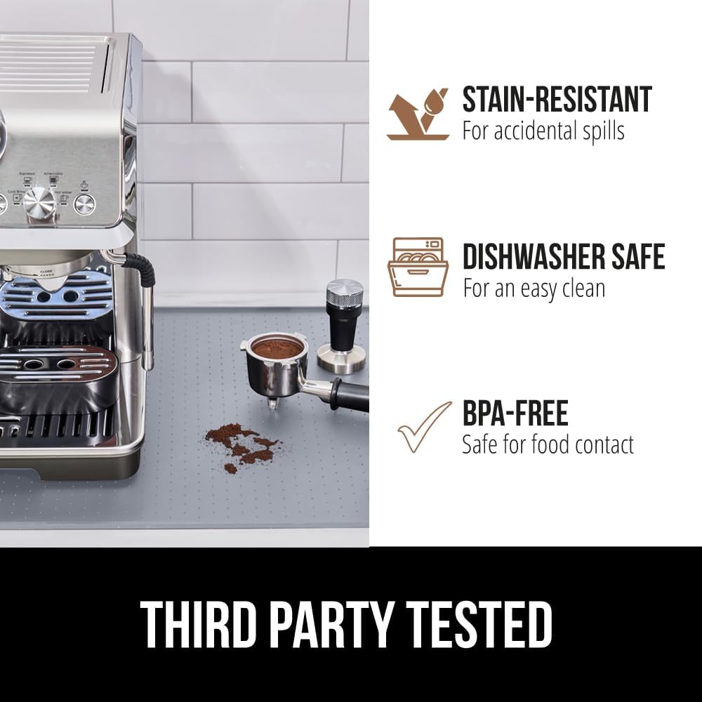 GORILLA GRIP Silicone Coffee Mat, 15x23, Espresso Drink Bar Station Accessories, Use Under Machine, Waterproof Heat Resistant Multi-Use Dish Drying Mats, Stays in Place, Kitchen Home Decor, Gray