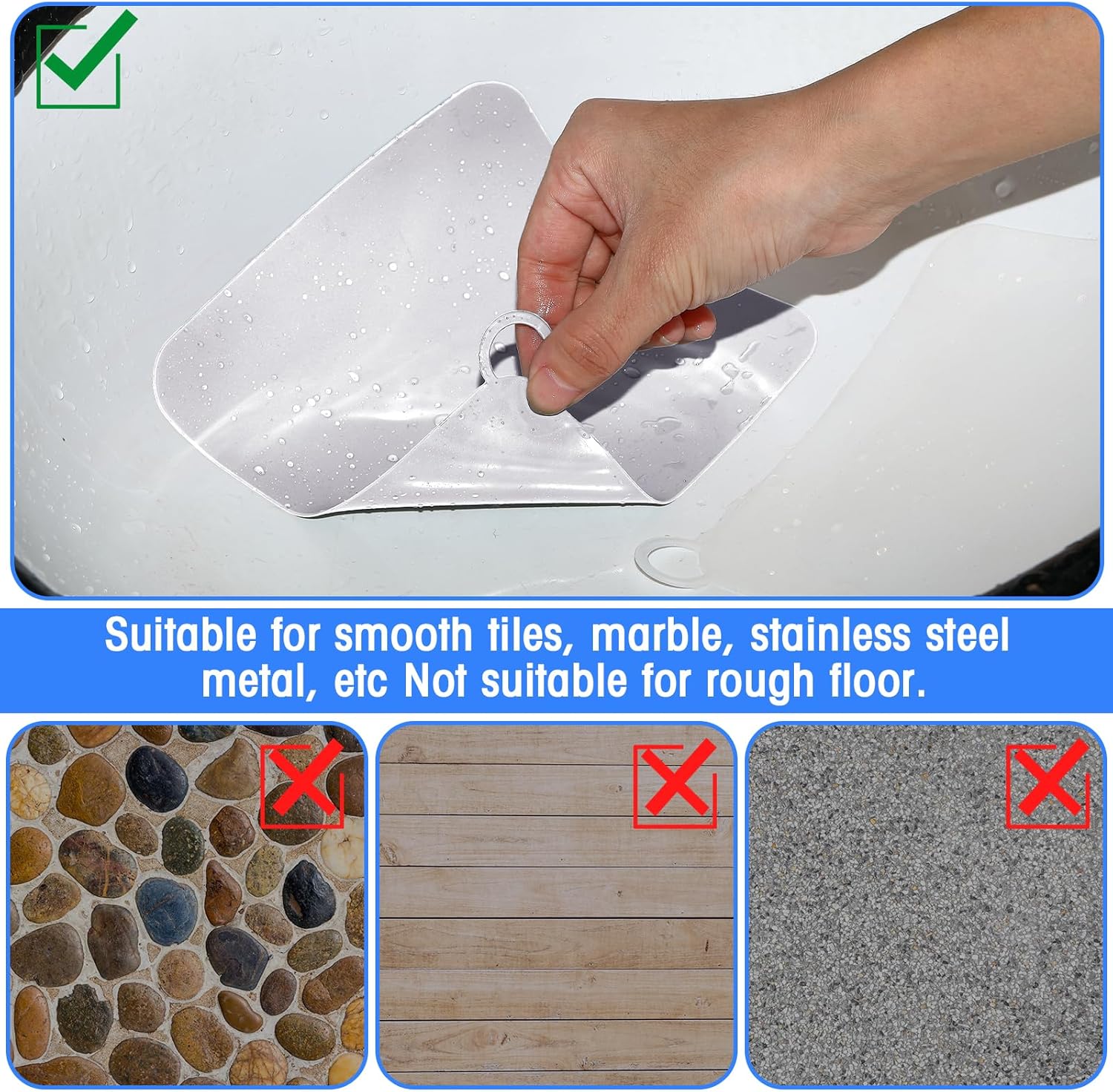 - Safe and Reliable: the drain cover is mainly made of quality silicone material, safe, reliable and strong, which can serve you for a long time; With smooth surface and neat edges, the mat can be easily adsorbed on the floor, and will not float easily