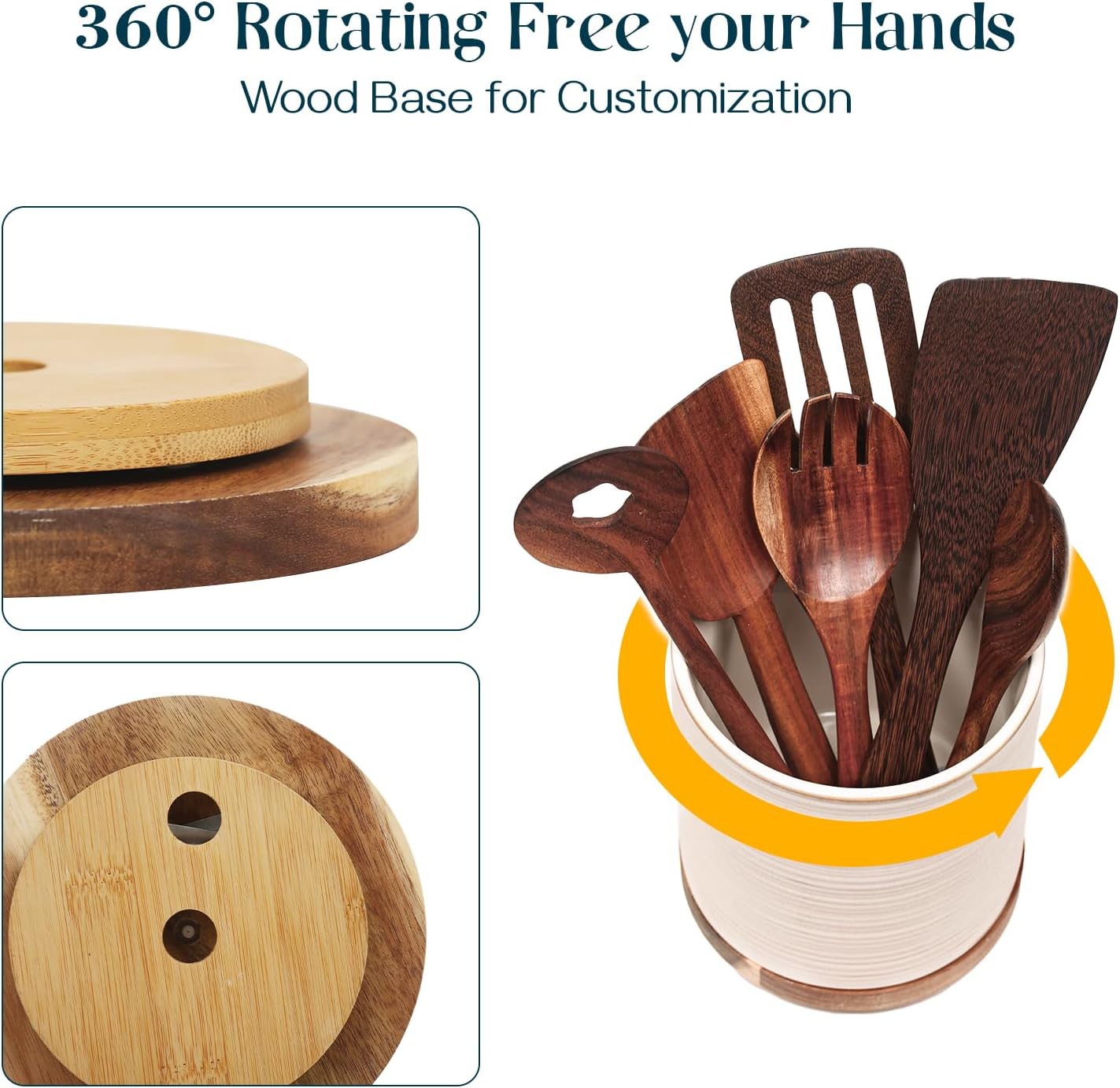 - 360° Rotating Convenience: Say goodbye to fumbling for utensils! Our rotating kitchen utensil holder offers a smooth, silent spin, ensuring a noise-free experience every time. Functioning like a handy lazy susan, this utensil organizer makes it effortless to grab the right spatula or tool with just a quick turn, bringing efficiency and ease to your cooking routine.
