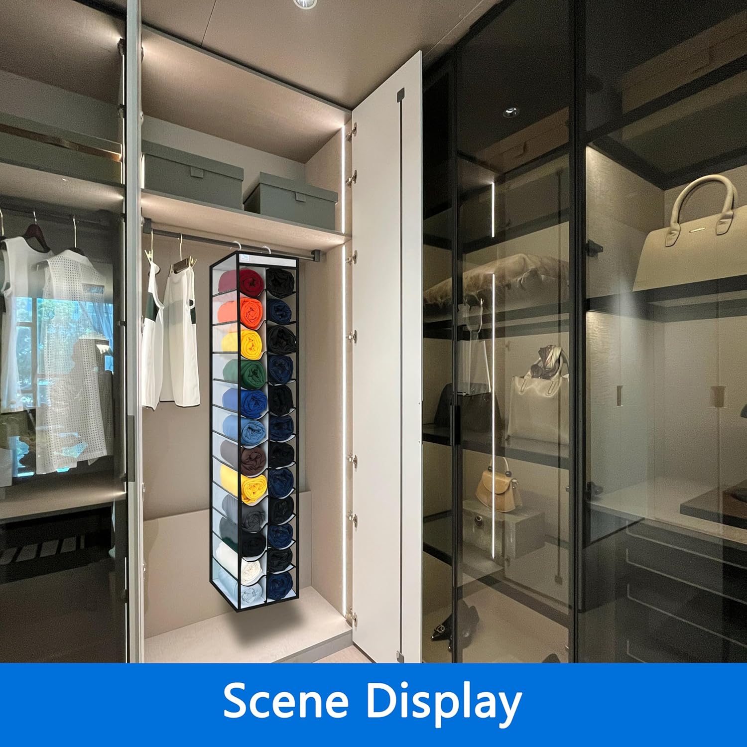 - 【Ample Storage Space】hanging closet organizer, 24 compartments, this closet organize provides plenty of room for all your clothes and other accessories,Free up space for your closet, cloakroom, wardrobe, dormitory, and more. Or take this foldable bins in rv trip, hiking and camping closet organizers and storage.