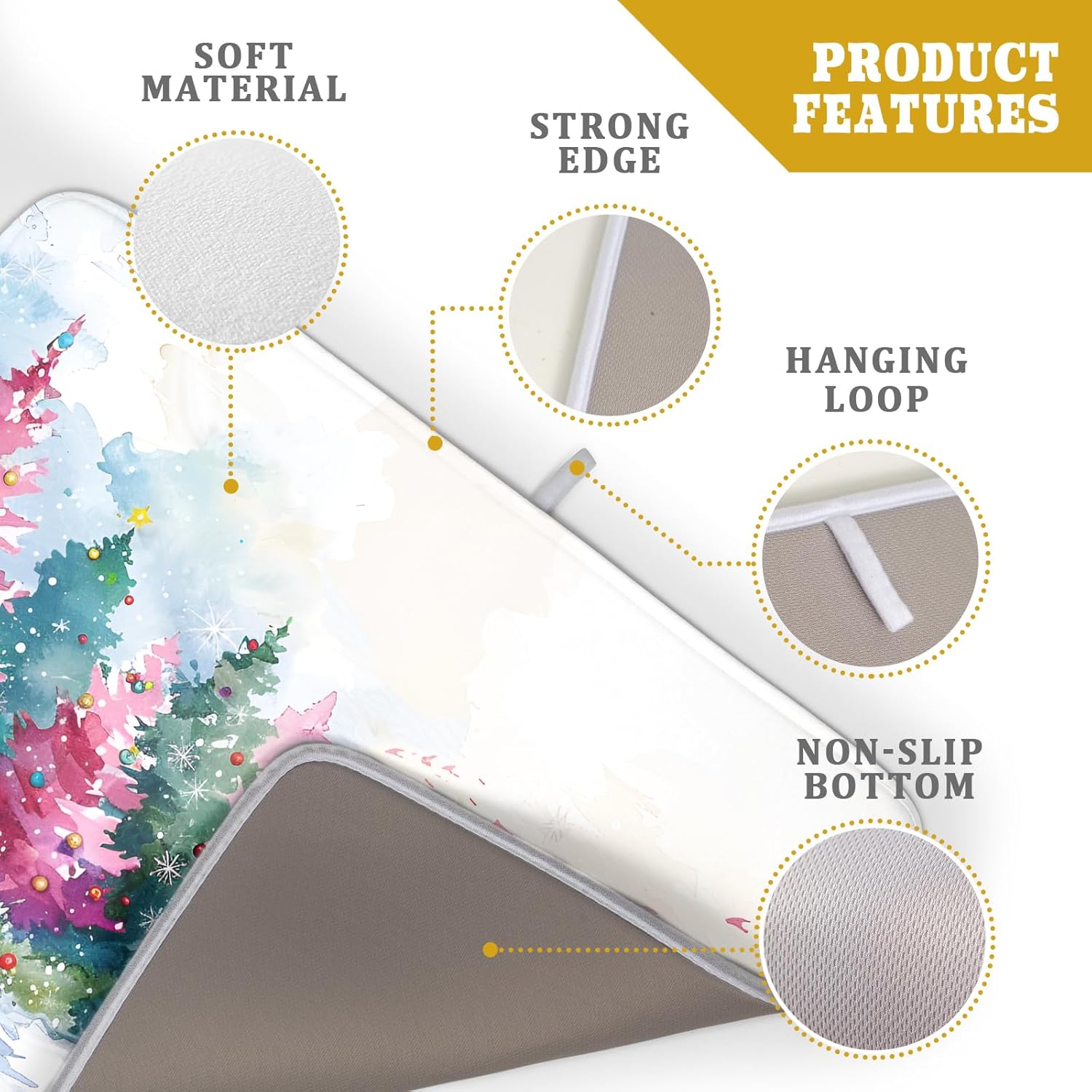 - 【Size】 The Xmas tree painting drying mat measure 16 x 18 inch(40.6 x 45.7 cm) for you. Fit most countertop space. Different design on 2 sides, one side can suck moisture with beach starfish pattern, another one gray non-slip side.