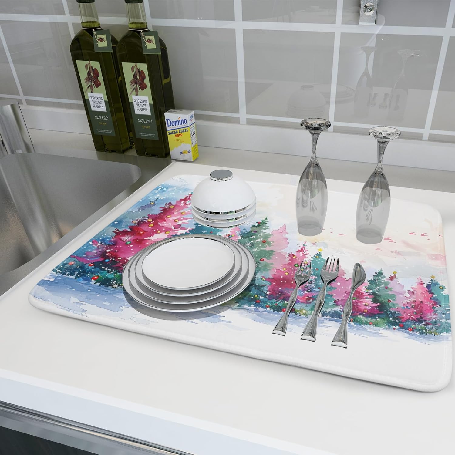 - 【3D Digital Printing Technology & Attractive Design】The cute trees dish draining mat features vibrant colors and exquisite image. Fun design that is sure to brighten up your day. We kept it simple and elegant to match most theme and colors. Eye-catching print brings more joy to your cooking time. Perfect housewarming gift for new home or renovation, christmas, mother’s day, birthday, thanksgiving day.