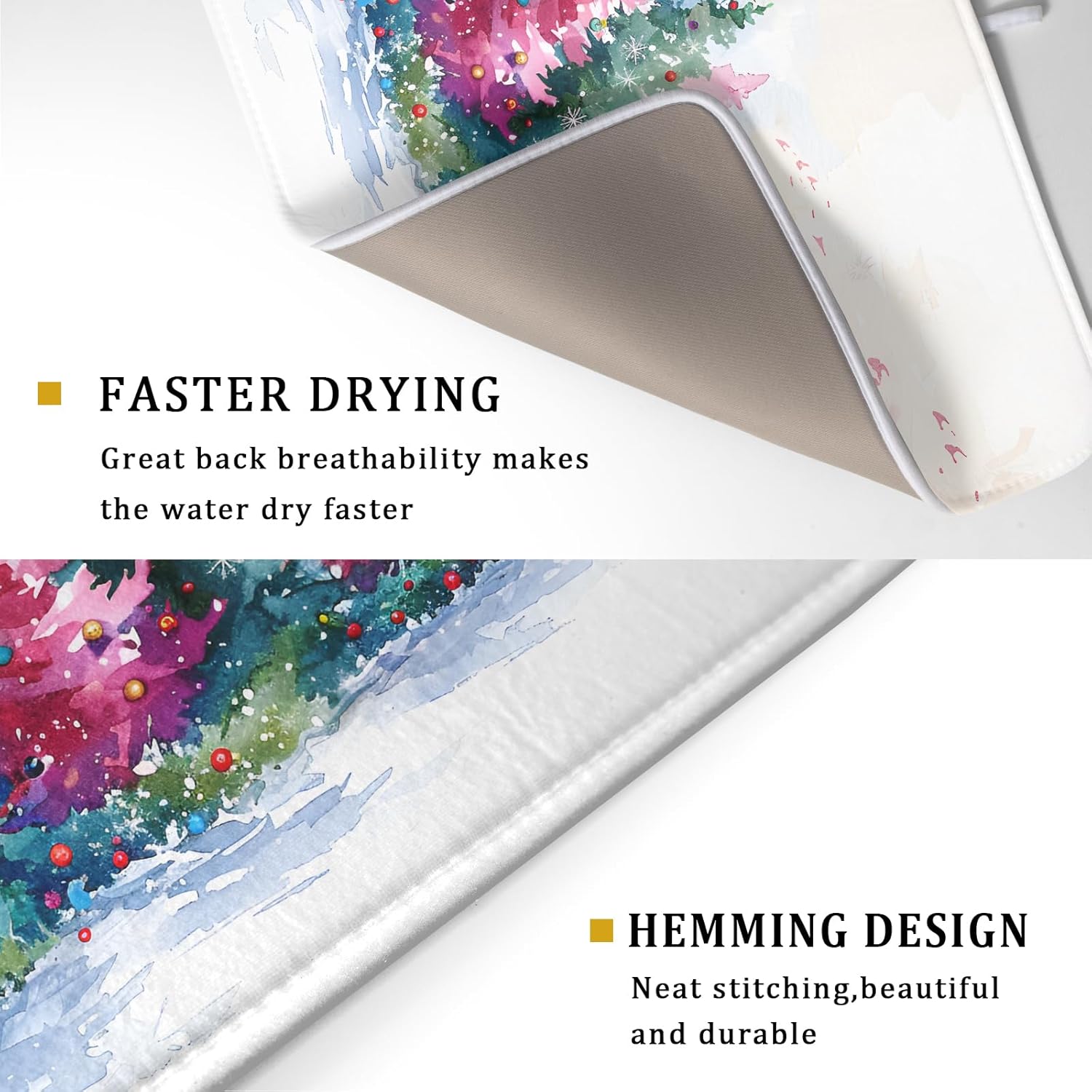 - 【Material】The decorative Christmas dish drying pad's surface is made of polyester, with a composite sponge material in the middle, which can quickly absorb water. The drying kitchen mat protects your counter from scuffs and scratches while also keeping your most prized glassware safe and sound.